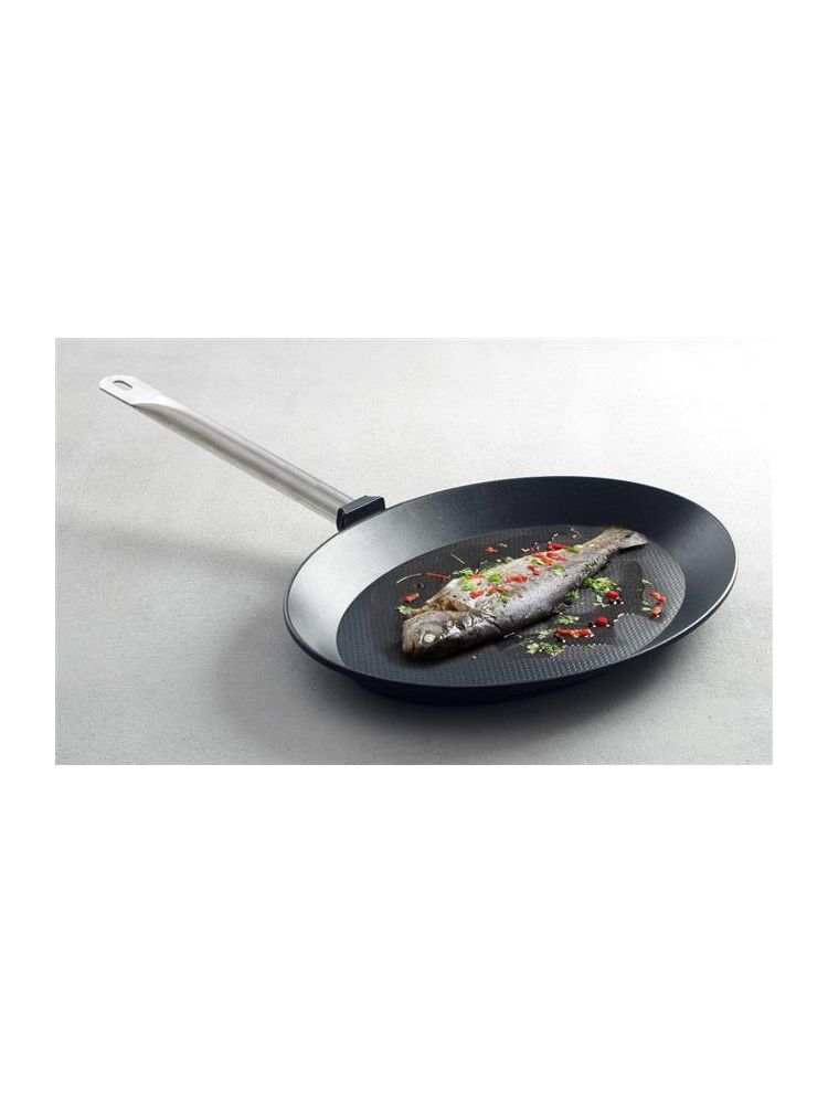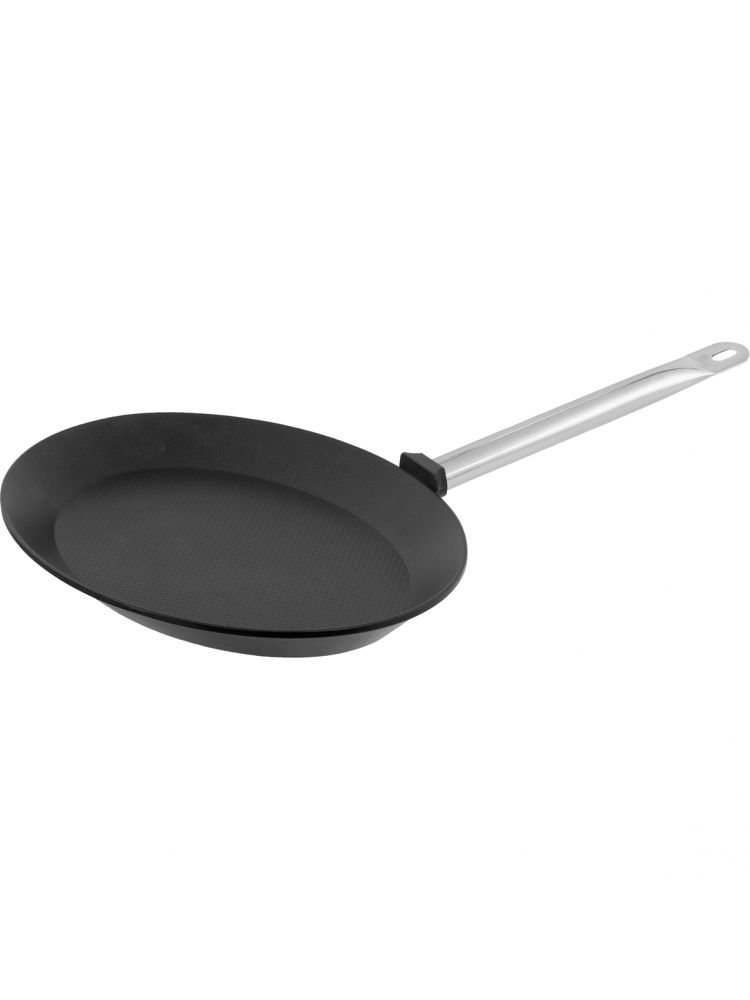 HENDI 629604 wykonana jest z aluminium, z tytanową powłoką nieprzywierającą. Idealna do wszystkich rodzajów kuchenek z wyjątkiem indukcyjnych. Uchwyt nie nagrzewa się, wykonany ze stali nierdzewnej 18/10. Ma owalny kształt odpowiedni do ryb.