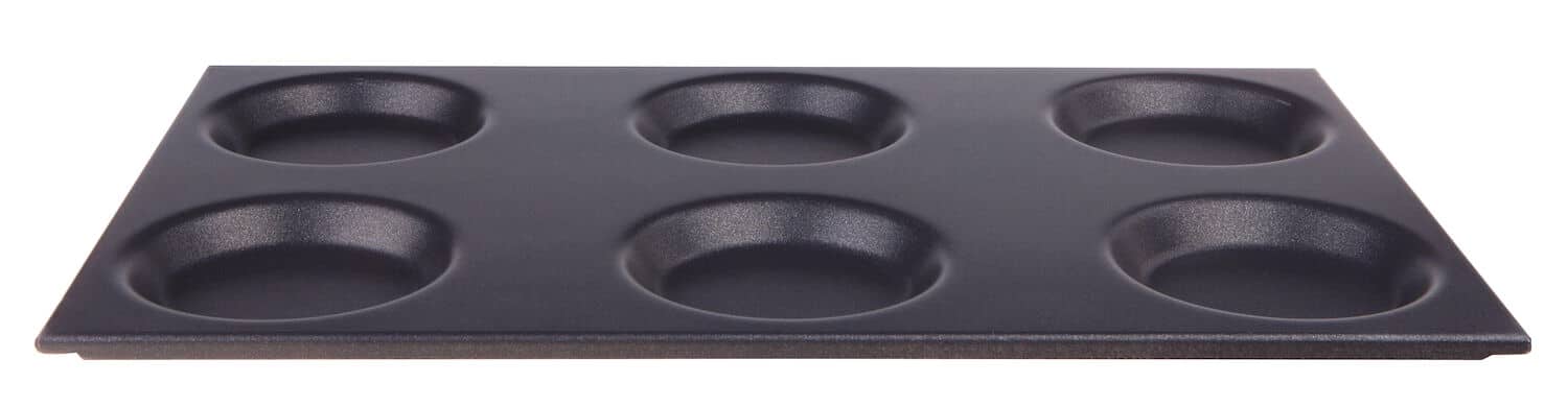Aluminiowa tacka z formami GN 1/1 – powłoka nieprzywierająca | Hendi 808757 jest odpowiednia do zastosowania w profesjonalnej gastronomii, a jej wymiary to D530 x S325 mm.
