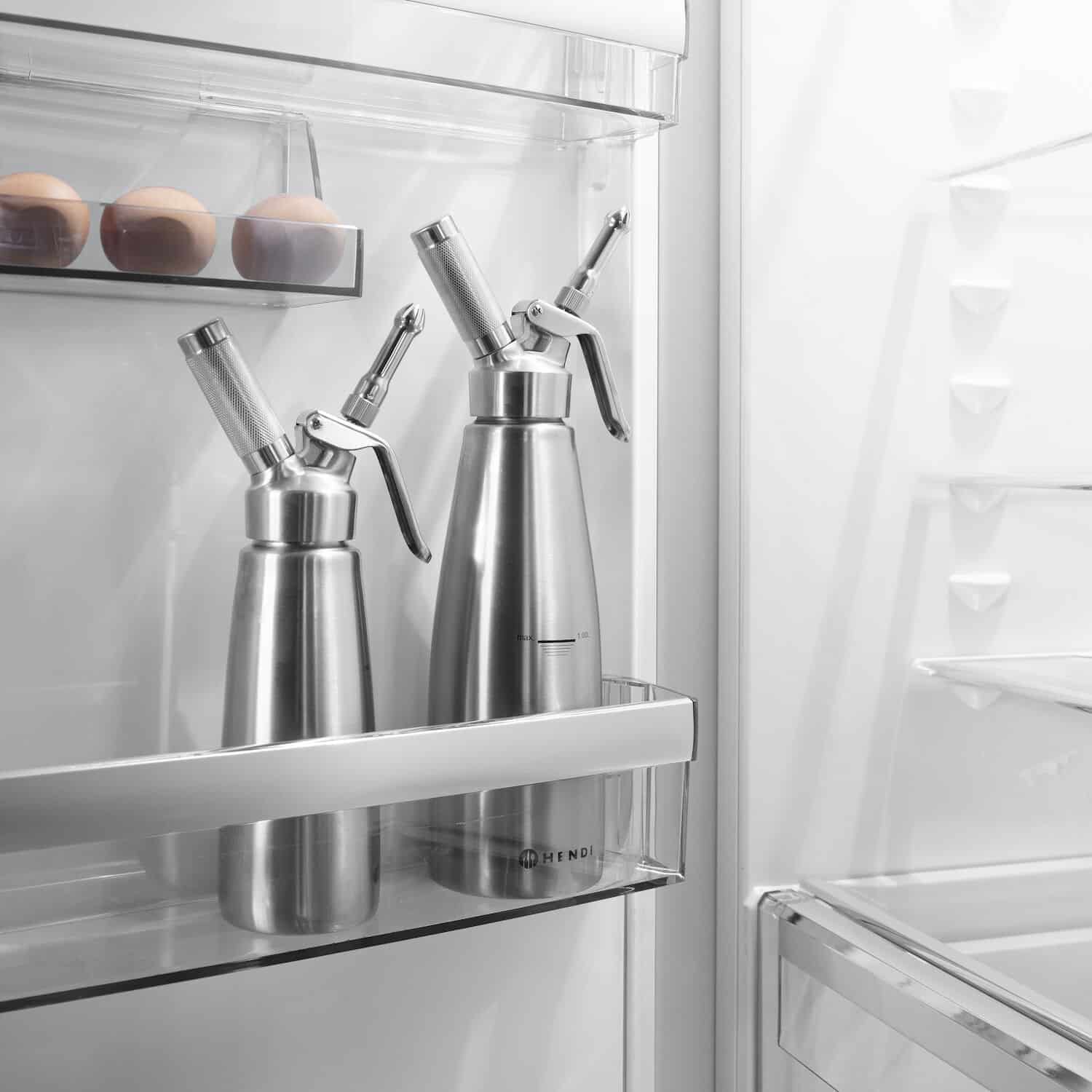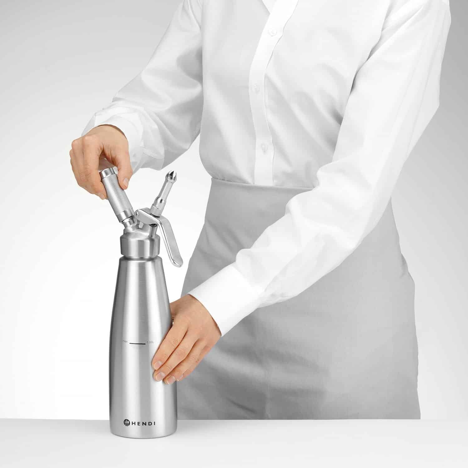 Butelka do bitej śmietany – 1 L – Profi Line | Hendi 588024 umożliwia przygotowanie bitej śmietany, kremów, sosów, pianek w łatwy i wygodny sposób.