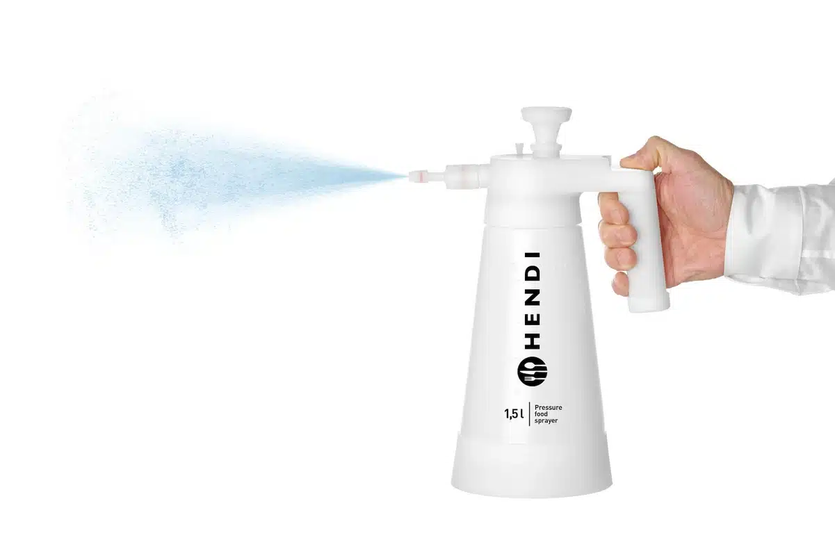 Ciśnieniowy rozpylacz do żywności – 1,5 L | Hendi 270875 jest przeznaczony do równomiernego rozpylania produktów spożywczych pod ciśnieniem. Doskonale sprawdza się na przykład do zastosowania z olejami, białkiem i żółtkiem jaj, aromatami spożywczymi.