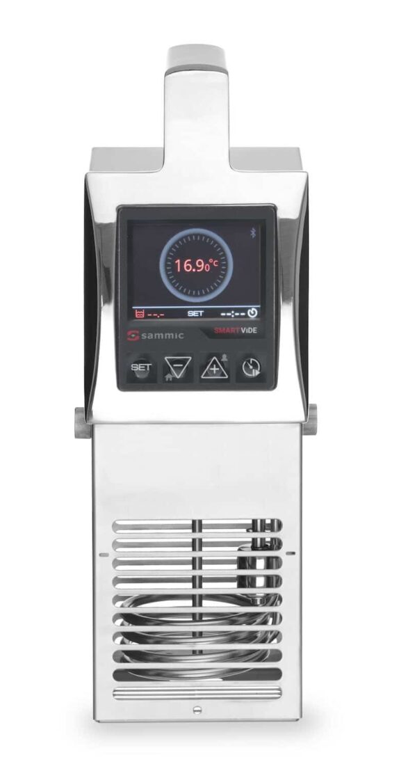 Cyrkulator zanurzeniowy do gotowania sous vide SmartVide 9 marki Sammic to profesjonalne urządzenie gastronomiczne, które doskonale sprawdzi się w każdej kuchni. Innowacyjna metoda gotowania żywności w niskiej temperaturze z użyciem worków próżniowych pozwala zachować walory smakowe i wartości odżywcze przygotowywanych potraw. Wyświetlacz LED, timer oraz łączność Bluetooth sprawiają, że SmartVide 9 jest niezwykle intuicyjny i łatwy w obsłudze.
