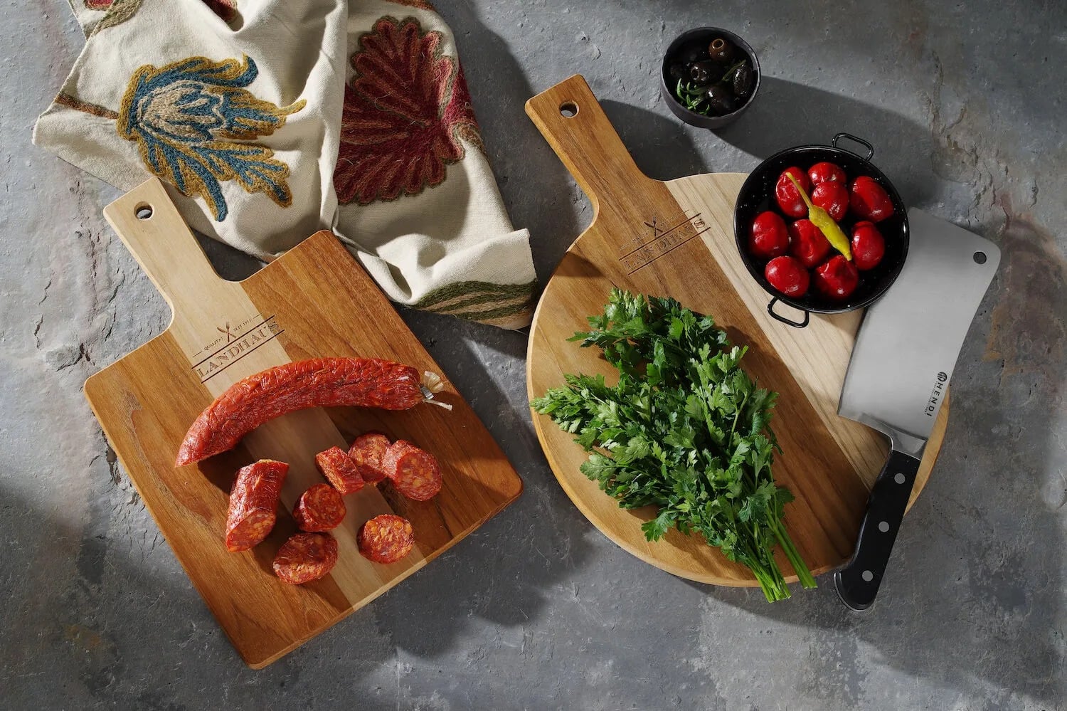 Deska do krojenia z serii Landhaus marki Tramontina jest idealna do siekania i krojenia, a także do serwowania sera lub przekąsek. Tego typu deski są delikatne dla ostrzy noży kuchennych i można na nich stawiać gorące przedmioty (garnki, filiżanki, patelnie), aby nie uszkodzić stołu lub blatu kuchennego. Praktyczny uchwyt z otworem do zawieszenia ułatwia codzienne użytkowanie.