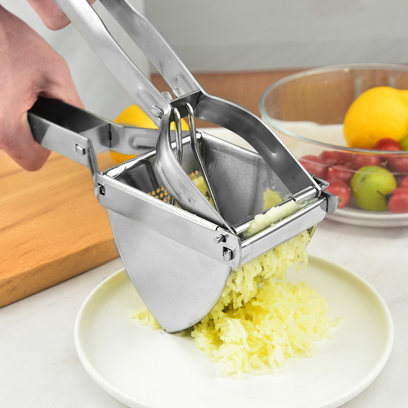 - Łatwe użycie: Wystarczy otworzyć ramiona praski, włożyć obrany ziemniak lub inny składnik i ścisnąć ramiona razem. Efektem jest idealnie rozgnieciony produkt bez wysiłku.