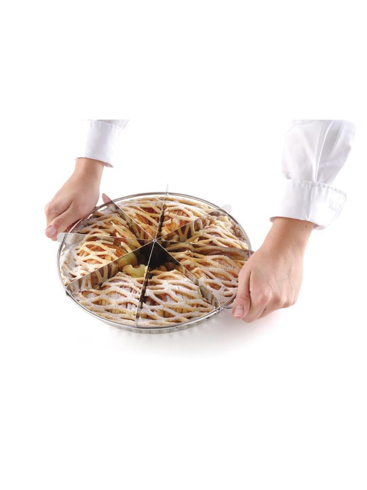 Podziel 8 kawałków tortu według własnych potrzeb. Szablon ze stali nierdzewnej najwyższej jakości pozwala uzyskać bardzo równe i identyczne kawałki.