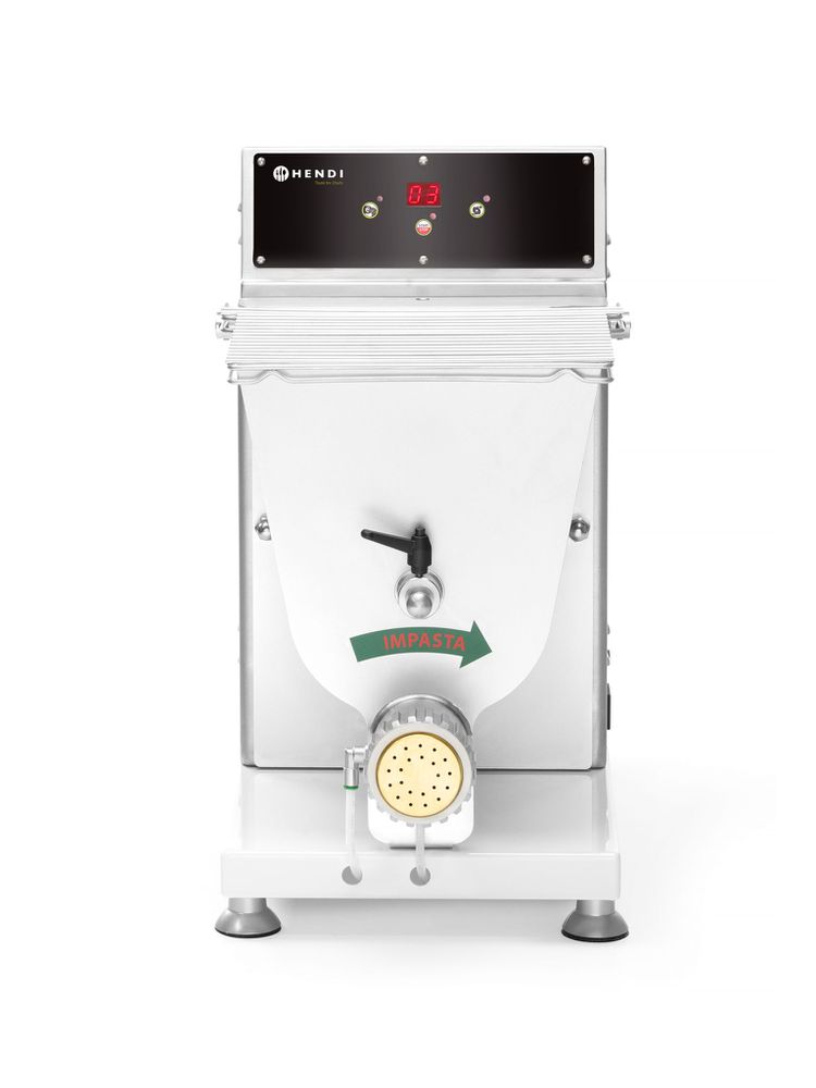 Maszyna do produkcji świeżego makaronu o różnych kształtach wykonana ze stali nierdzewnej. Z możliwością podłączenia wody, która chłodzi uformowany makaron oraz nożem odcinającym kawałki makaronu. Pokrywa z kratką umożliwia dodawanie składników podczas pracy. Wyposażona w cyfrowy panel sterowania.
