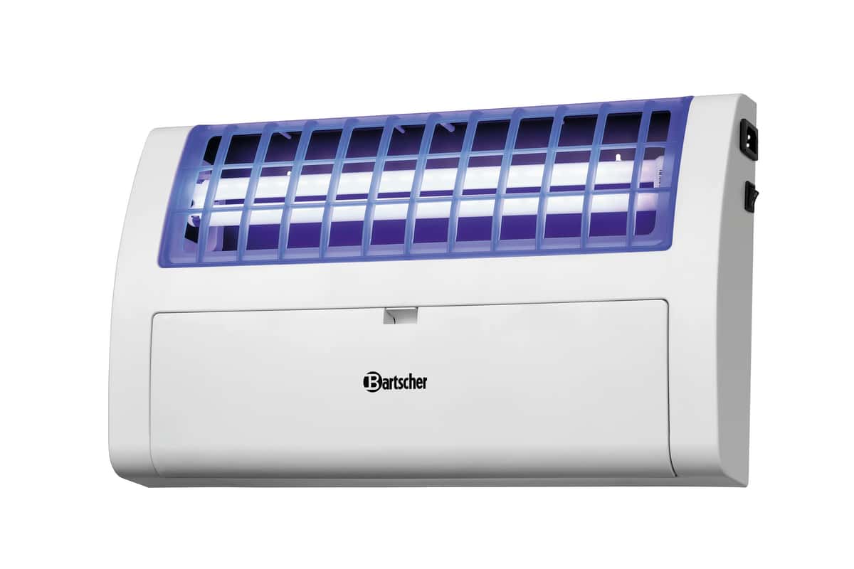 Elektryczny łapacz owadów – 36 W | Bartscher 300350 to bezdźwięczny, higieniczny łapacz owadów, który posiada duży skuteczny zasięg i przyciąga owady za pomocą światła UV. Owady są bezpiecznie wyłapywane na samoprzylepną folię znajdującą się za urządzeniem, którą można łatwo wymienić.