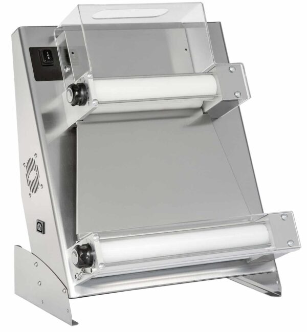 Elektryczny wałek do ciasta z dwoma parami wałków doskonale sprawdza się do produkcji ciasta na pizzę, makaron, knedle i znacznie przyspiesza przygotowanie potraw. Pozwala przygotować ciasto o średnicy od 26 do 45 cm. Produkt świetnie sprawdza się zarówno w dużej, jak i małej gastronomii.