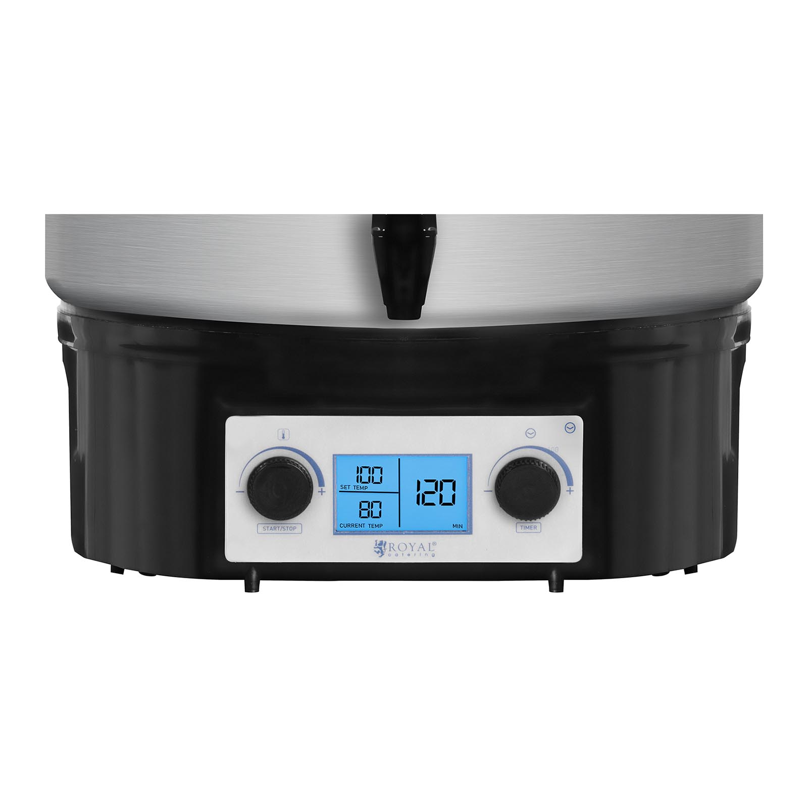 Garnek do grzanego wina RCMW-27SD podgrzewa napoje takie jak wino, mleko czy wodę na herbatę i utrzymuje je bezpiecznie ciepłe. Ponadto jest uniwersalnym profesjonalnym urządzeniem do wszystkich płynnych potraw, które wymagają szybkiego i niezawodnego podgrzania. Dzięki wkładanemu rusztowi urządzenie doskonale nadaje się do pasteryzacji soków, dżemów, dyni czy cukinii, a także wielu innych rodzajów owoców i warzyw, które w tym celu wcześniej umieszcza się w słoikach i następnie przechowuje w pojemniku.