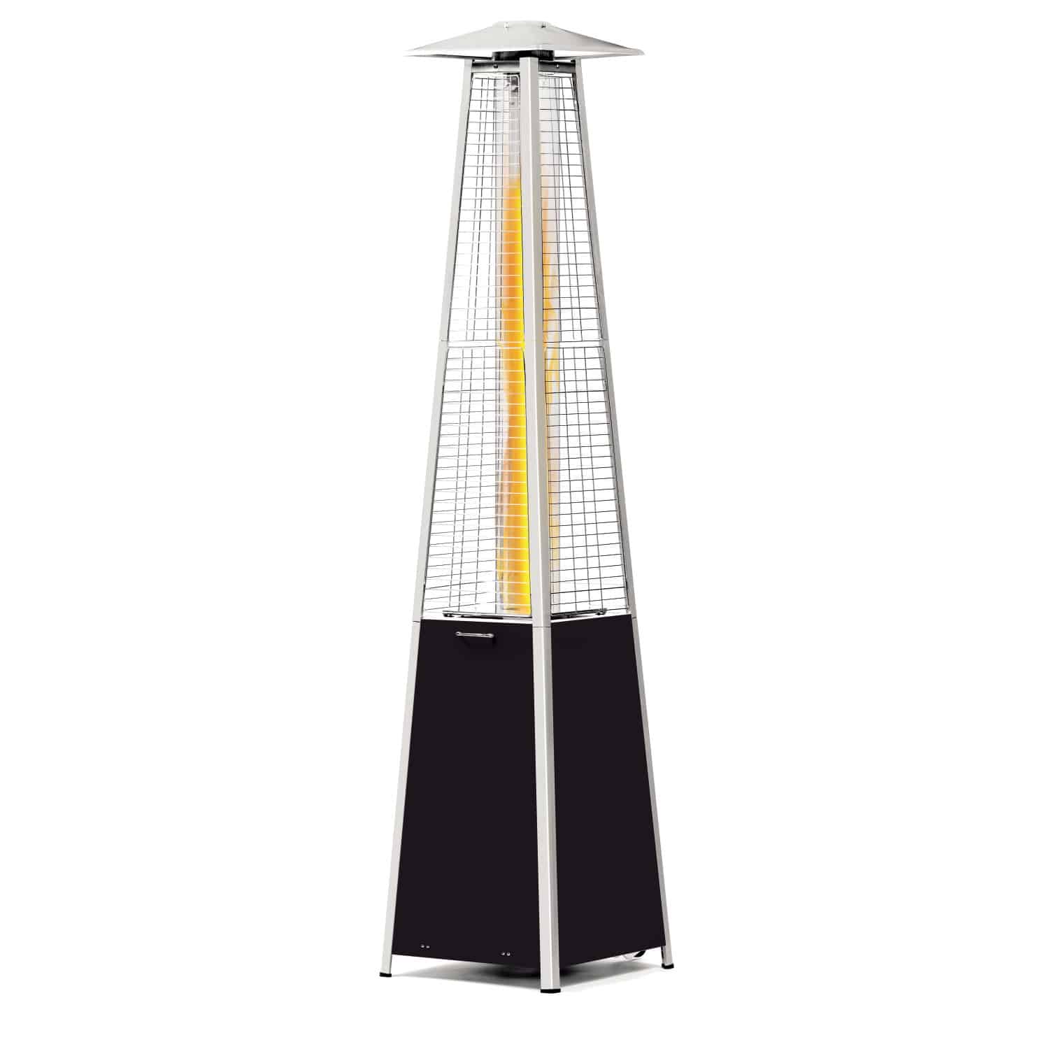 Gazowa lampa grzewcza z płomieniem w kształcie piramidy, idealna do ogrodowych restauracji, doskonała na imprezy plenerowe.