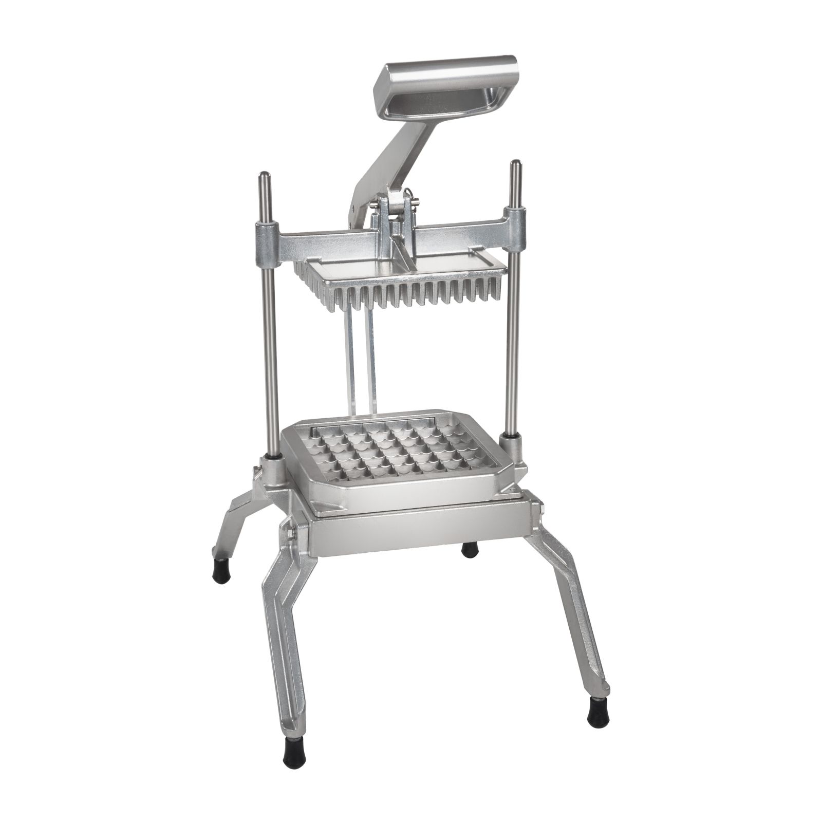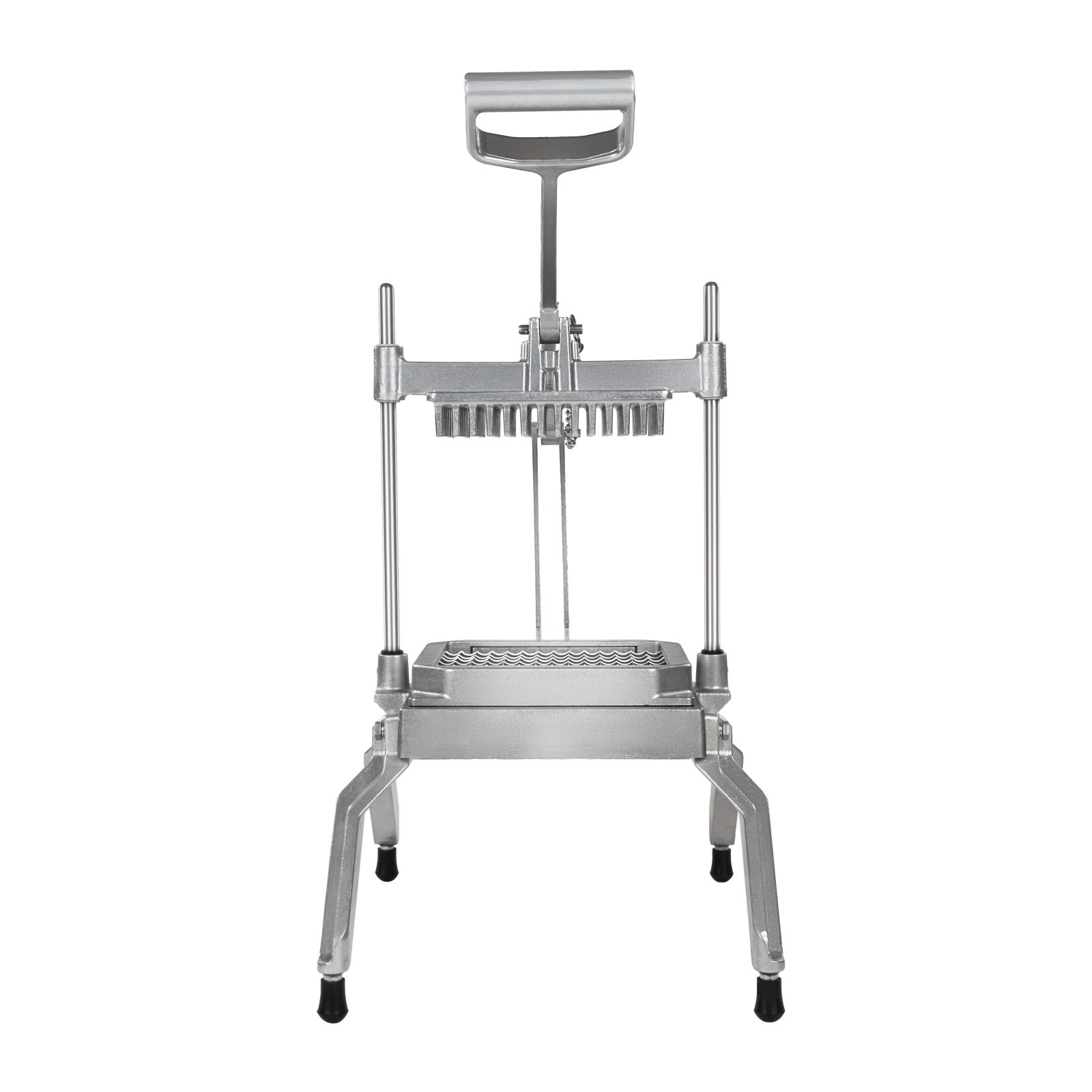 Krajalnica do sałaty RCGT-2 od producenta Royal Catering jest przeznaczona nie tylko do użytku domowego, ale także do profesjonalnego zastosowania w stołówkach, kuchniach i restauracjach, gdzie ułatwia krojenie owoców i warzyw w kostkę o jednakowym rozmiarze. Dzięki wykonaniu z wysokiej jakości stali szlachetnej jest wyjątkowo trwała i łatwa do mycia czystą wodą. Pionowa konstrukcja zapewnia maksymalną kompaktowość i wytrzymałość. Podczas krojenia owoce lub warzywa umieszcza się na specjalnym stojaku i przeciska ruchem ręki przez wyjątkowo ostre ostrza. Gumowane nóżki zapewniają stabilną pozycję.