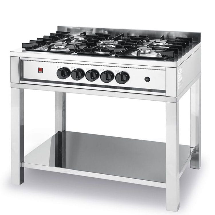 Profesjonalna kuchenka gazowa Hendi z serii Kitchen Line. Urządzenie wyposażone w 5 palników. Prezentowany model polecany jest do mniejszych kuchni.