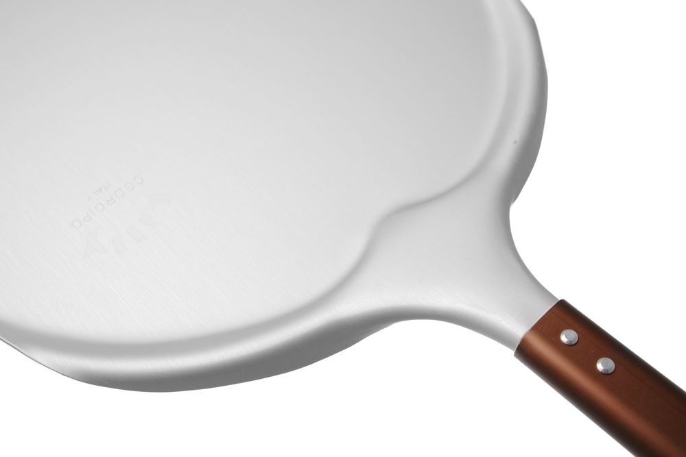 Zaostrzony brzeg i mikroperforacja powierzchni dla łatwego podważania i nabierania pizzy