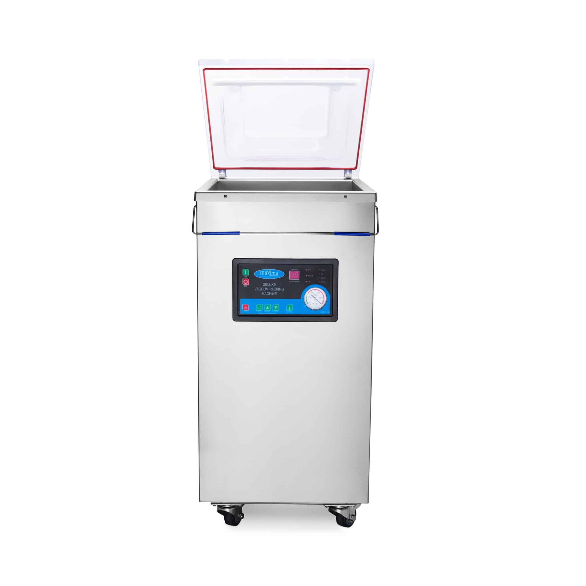 Maszyna do pakowania próżniowego – MVAC 500 | Maxima 09300230 to luksusowa maszyna do pakowania próżniowego, która automatycznie zapakuje każdą żywność. Dzięki temu Twoje jedzenie zachowa świeżość znacznie dłużej. Ten sprzęt kuchenny to model podłogowy z eleganckim wykończeniem. Dlatego ta maszyna do pakowania próżniowego będzie doskonałym uzupełnieniem Twojej kuchni. Dodatkowo maszyna posiada cztery kółka, dzięki czemu łatwo ją przemieszczać po kuchni. To naprawdę wygodne, ponieważ ta maszyna do pakowania próżniowego waży 73 kilogramy. Poniżej znajdziesz wszystkie cechy maszyny do pakowania próżniowego Maxima 09300230: