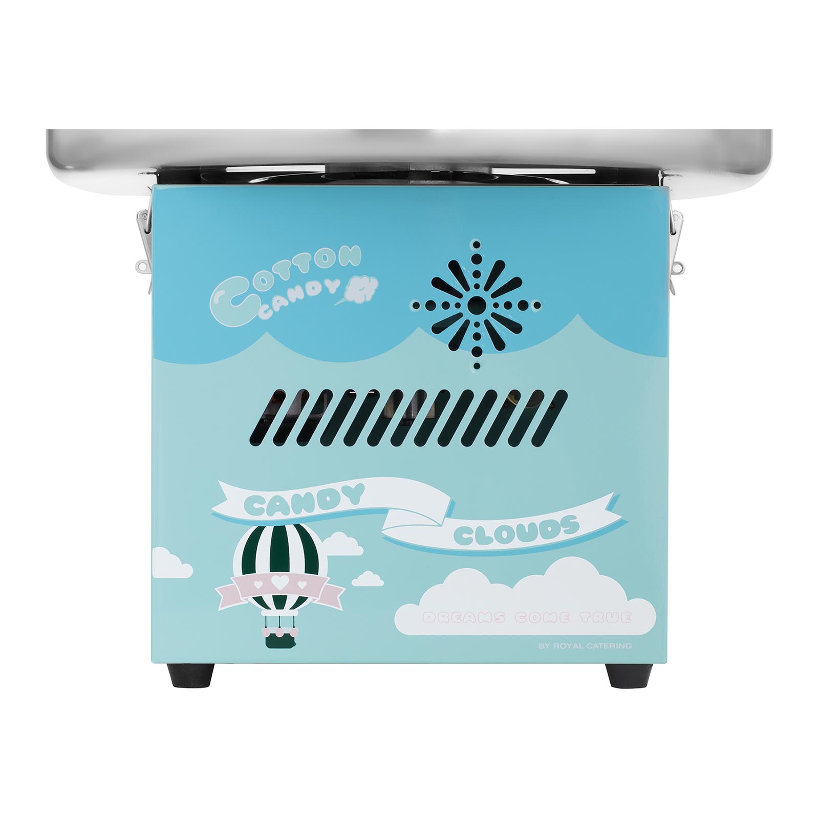Royal Catering, Twój specjalista w zakresie wyposażenia gastronomicznego, oferuje tą maszynę do waty cukrowej RCZK-1200-BG, która zapewnia wszystko, czego potrzebujesz do produkcji waty cukrowej. Niezależnie czy na jarmark bożonarodzeniowy, festiwale, do barów szybkiej obsługi czy na prywatne okazje – kup tę maszynę do waty cukrowej w wyrazistym turkusowym kolorze!