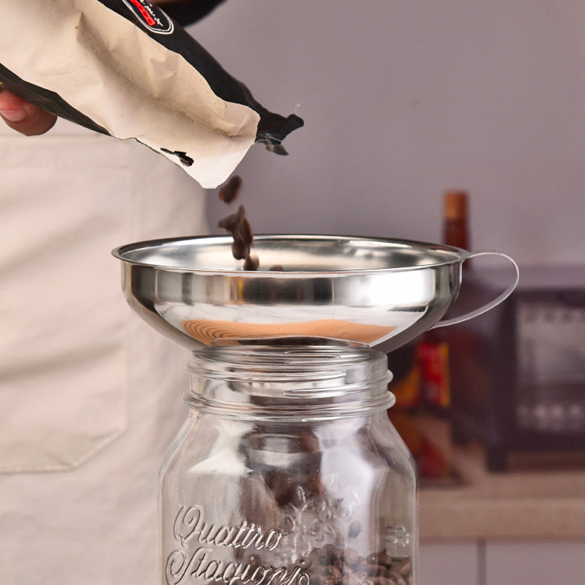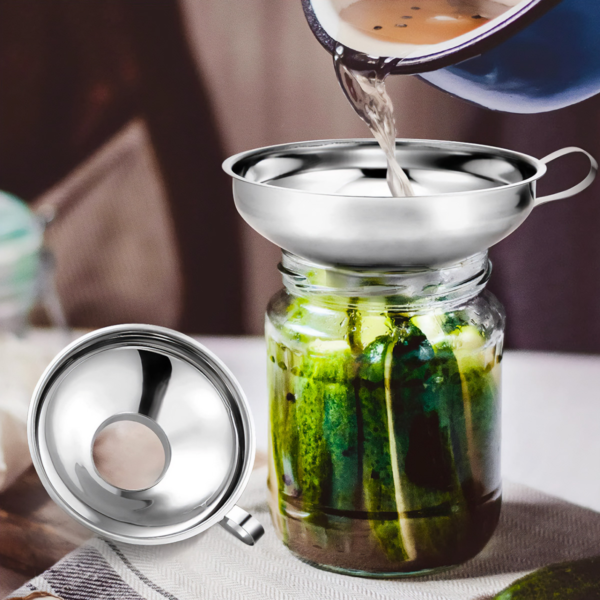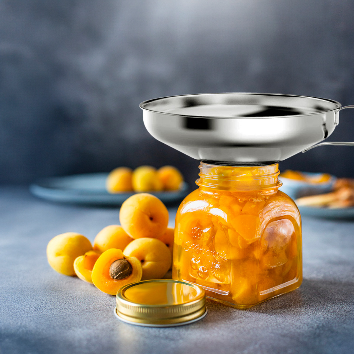 Praktyczny lejek ze stali nierdzewnej z krótką szyjką i uchwytem to idealny pomocnik przy napełnianiu butelek, słoików do wekowania czy dozowaniu płynów bez niepotrzebnego rozlewania. Jego mniejszy rozmiar jest odpowiedni do standardowych naczyń kuchennych. Uchwyt zapewnia wygodną obsługę, a materiał ze stali nierdzewnej gwarantuje higienę i długą żywotność.