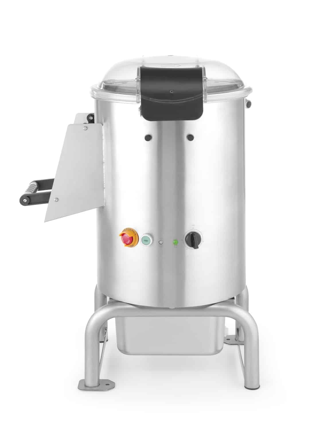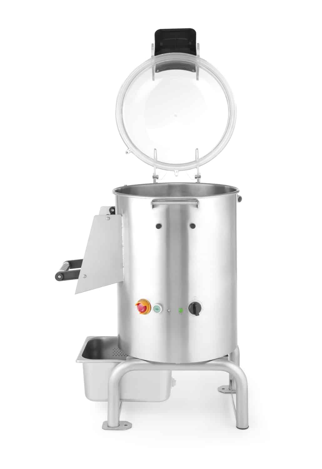 - Pokrywa wykonana z wytrzymałego poliwęglanu; umożliwia obserwację procesu obierania