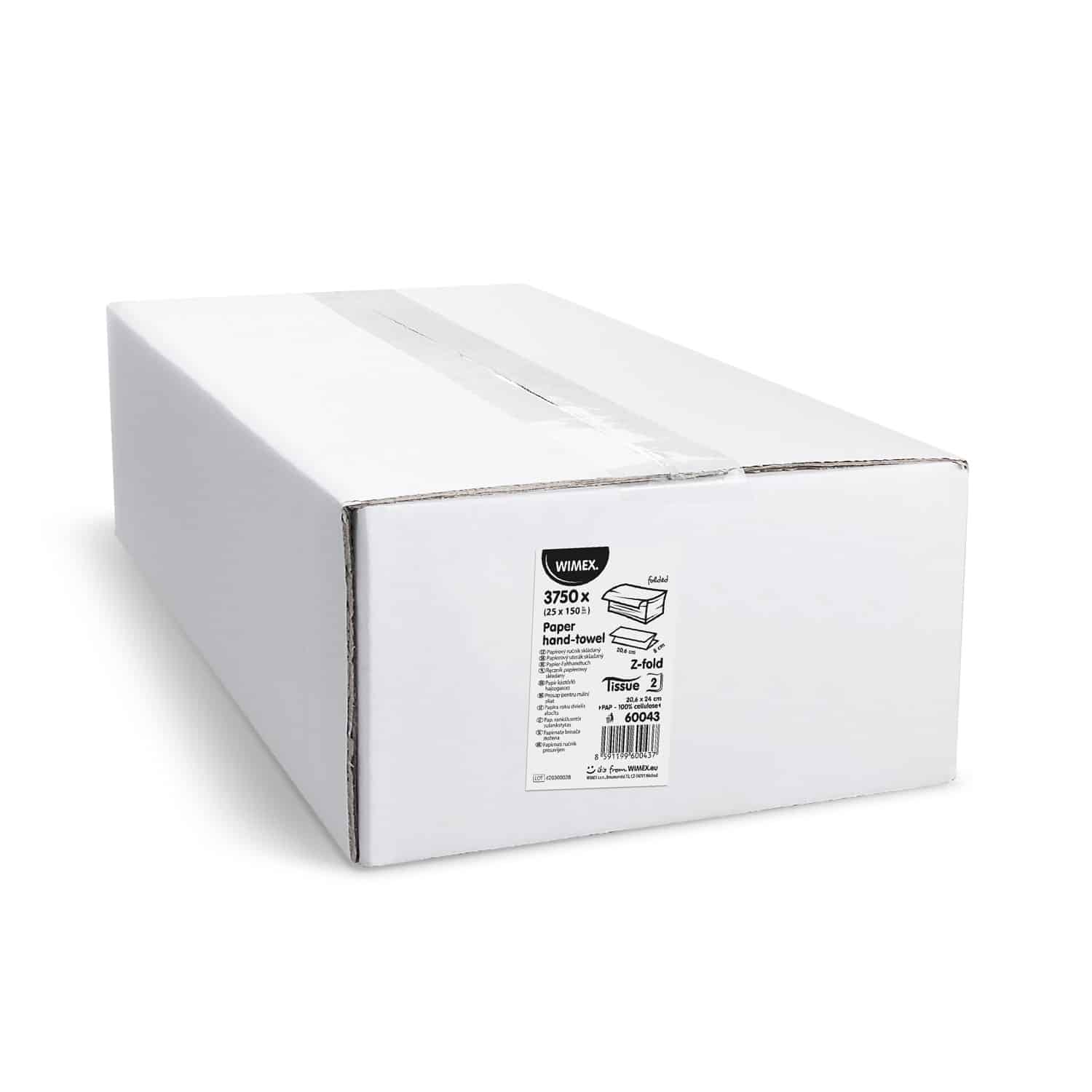 Papierowy ręcznik składany Z, 2-warstwowy biały 20,6 x 24 cm [3750 szt.] EAN:8591199600437,,