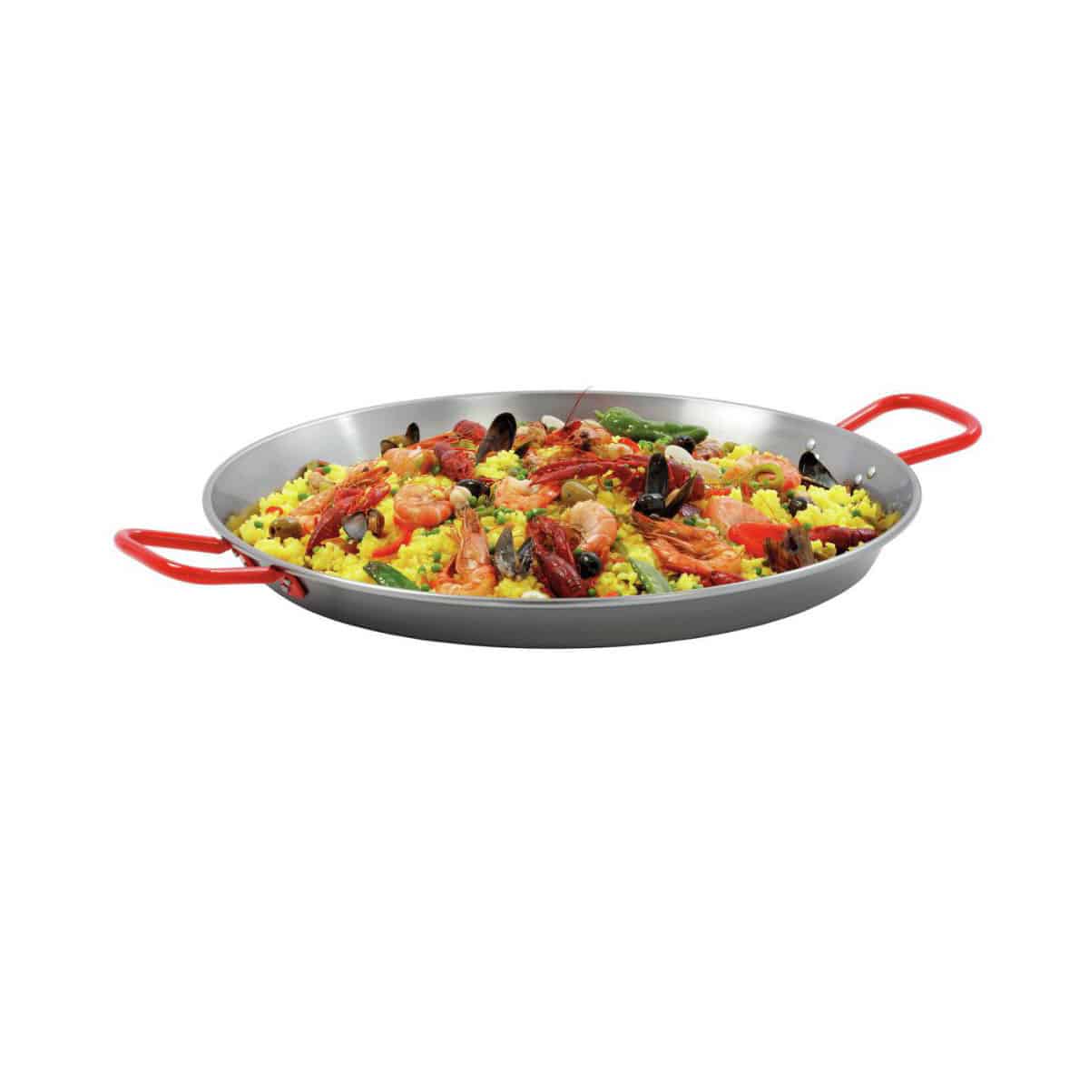 Wytrzymała, w całości wykonana z polerowanej stali, strukturalna powierzchnia do gotowania z wysokim rantem, żaroodporna rączka. Patelnie Bellacher Paella są również idealnie odpowiednie do przygotowywania smażonych ziemniaków, krojonego mięsa, gyrosa z patelni lub chili con carne.