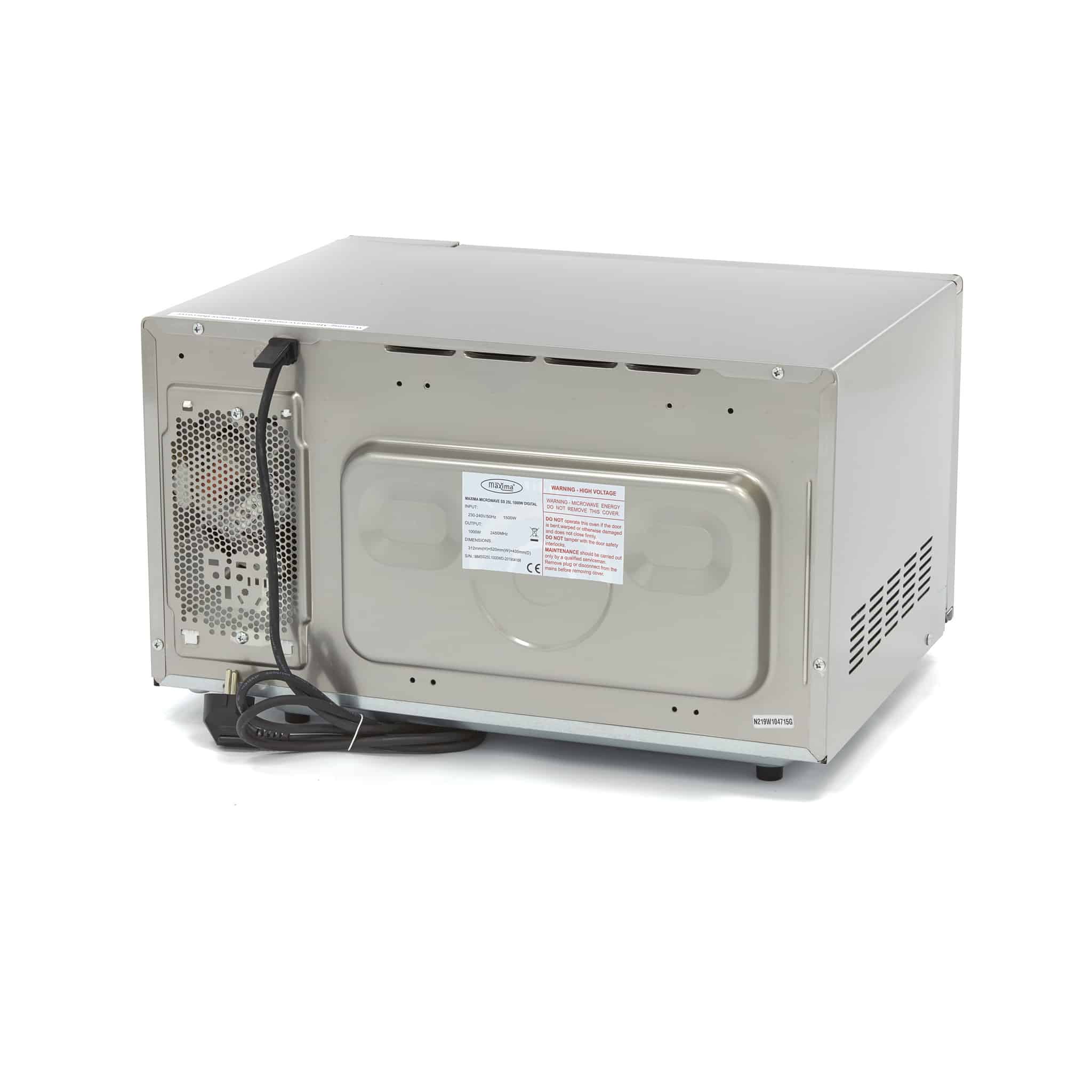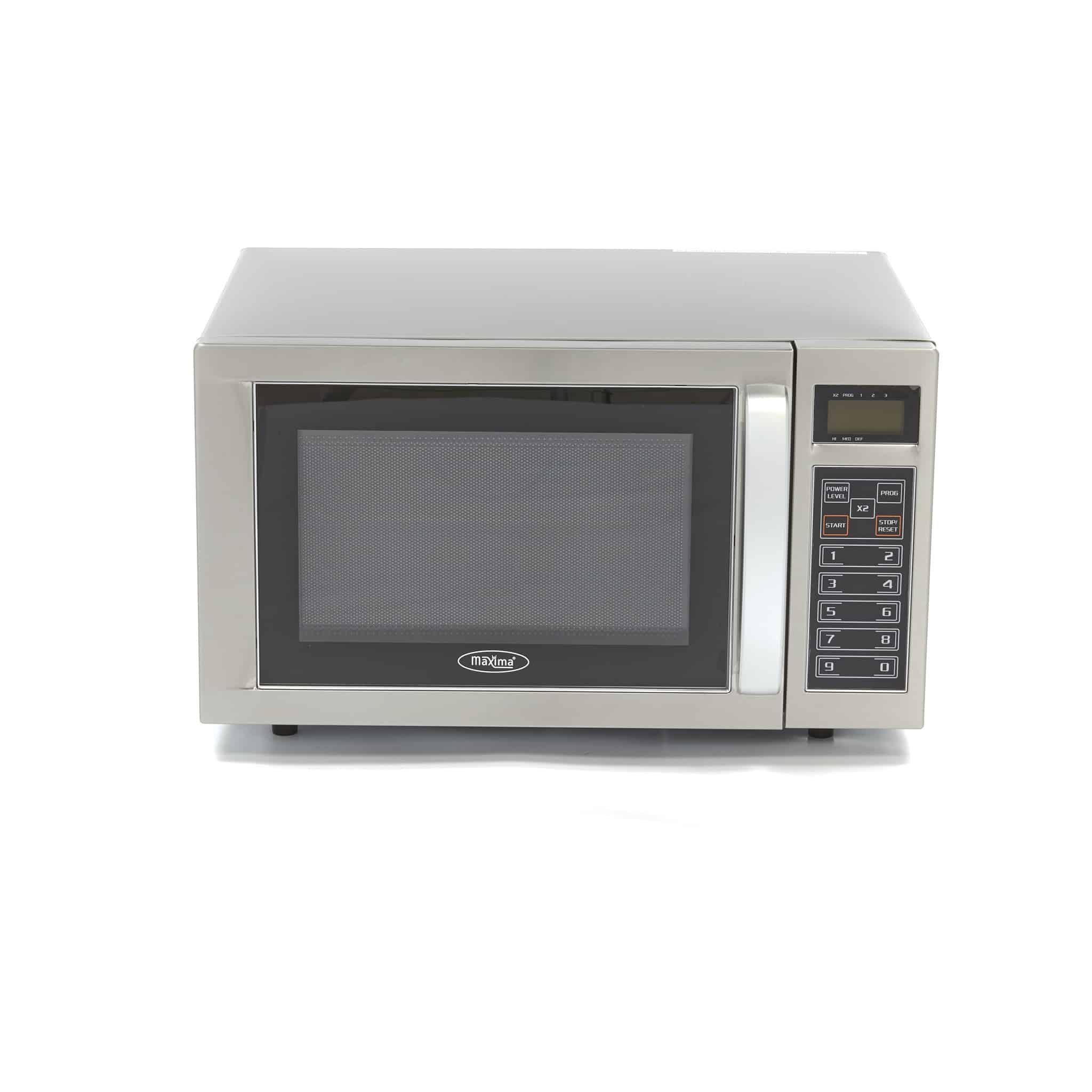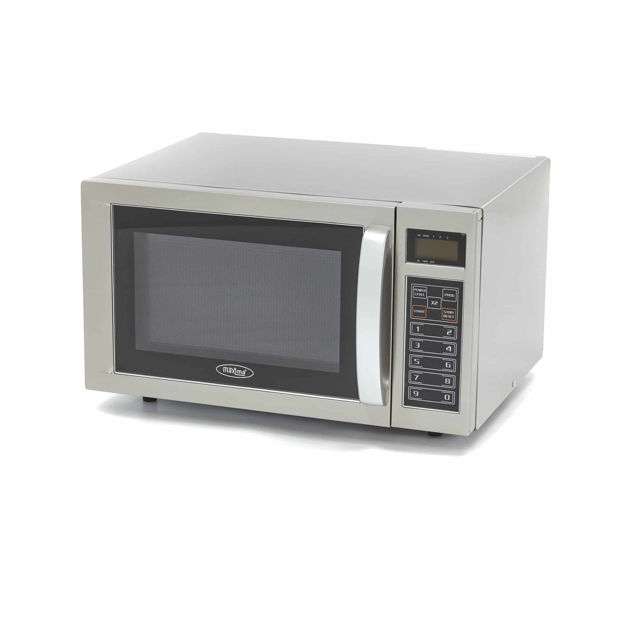 Profesjonalna kuchenka mikrofalowa – 25 L – 1000 W | Maxima 09367010 jest szeroko stosowana dzięki wysokiej mocy i różnym programom. Obudowa i komora wewnętrzna wykonane są ze stali nierdzewnej z ceramiczną płytą na spodzie. Urządzenie jest łatwe w obsłudze i ustawianiu dzięki cyfrowym elementom sterującym.