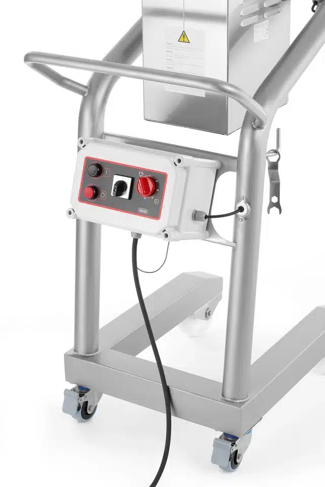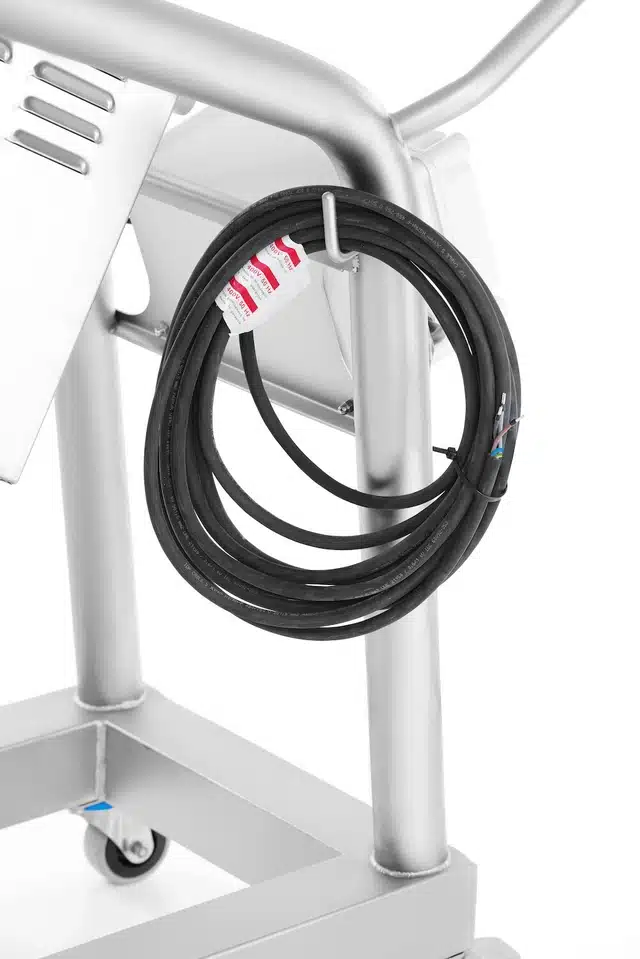 - Przewody elektryczne schowane w ramie wózka, dzięki czemu obszar roboczy jest wolny od przeszkód ograniczających swobodę ruchu ramienia miksującego