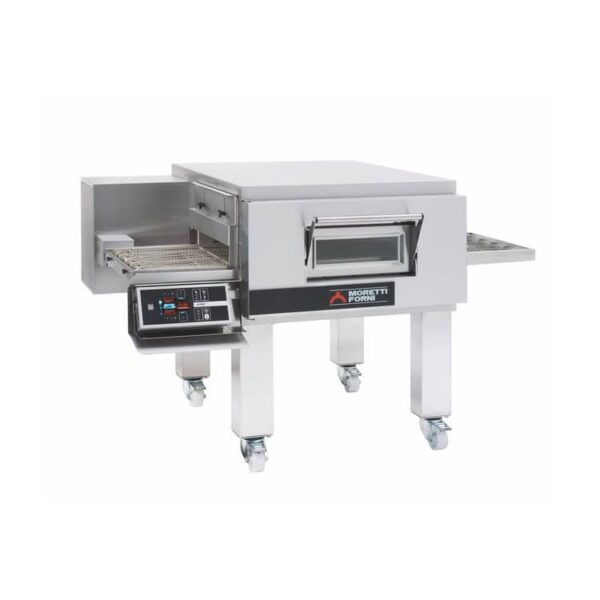 Przemysłowy piec do pizzy – 16,5 kW | MFMT75ET1S to elektryczny piec tunelowy z systemem autodiagnostyki, odpowiedni nie tylko do przygotowywania pizzy, ale także mięsa, makaronów, warzyw i innych potraw. Regulowana prędkość taśmy, 100 programów pamięci, niezależna regulacja temperatury górnej i dolnej części komory. Wydajność na godzinę dla pizzy o średnicy 33 cm wynosi 48 sztuk. Maksymalna temperatura 400°C. Funkcja oszczędzania energii elektrycznej. Średnie zużycie energii: 8,3 kW/h. Dostarczany na podstawie z kółkami. Cool Around Technology – zaawansowany system chłodzenia zewnętrznej powierzchni.