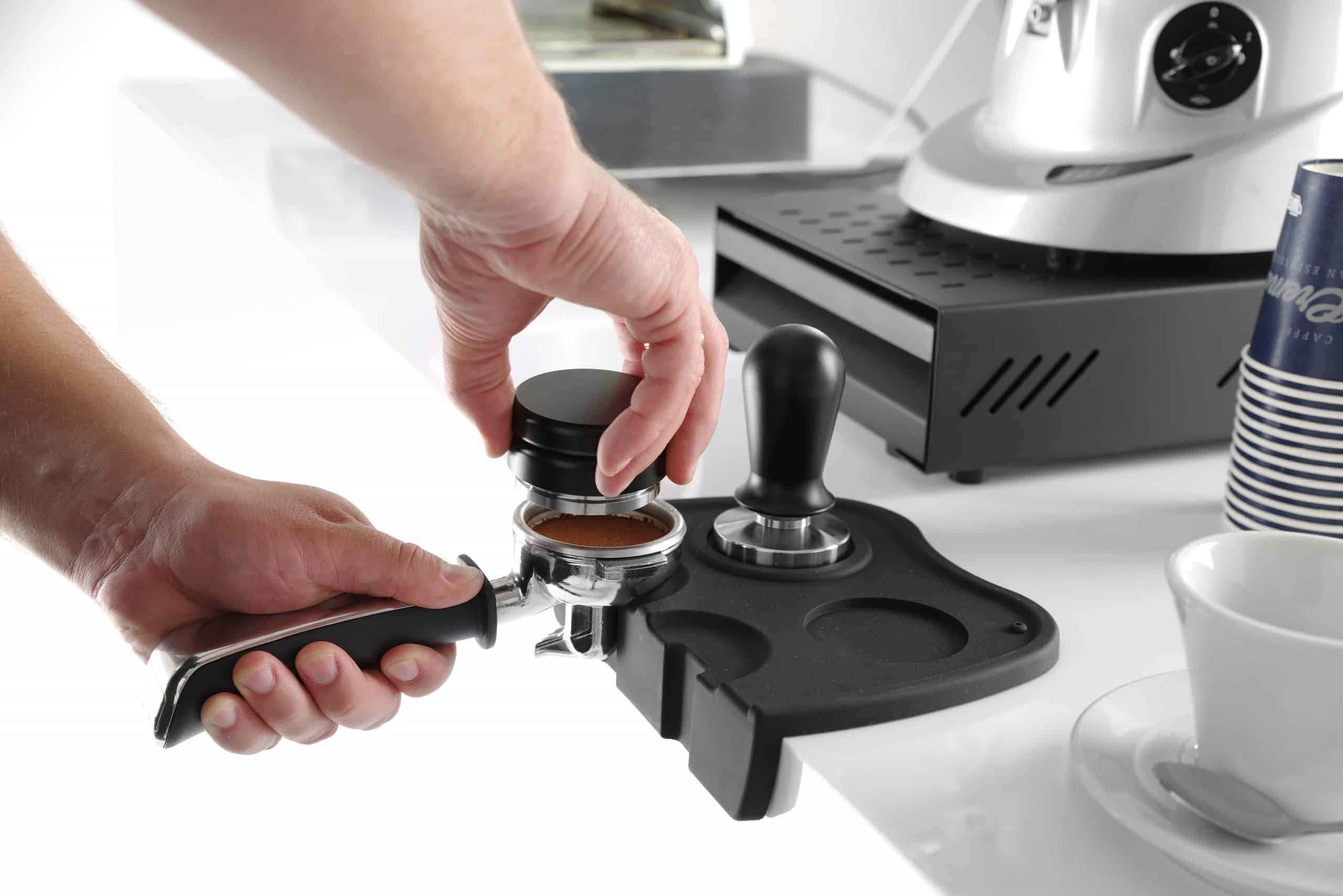 - Płynna regulacja wysokości tampera pozwala zawsze uzyskać ten sam nacisk na kawę w portafiltrze