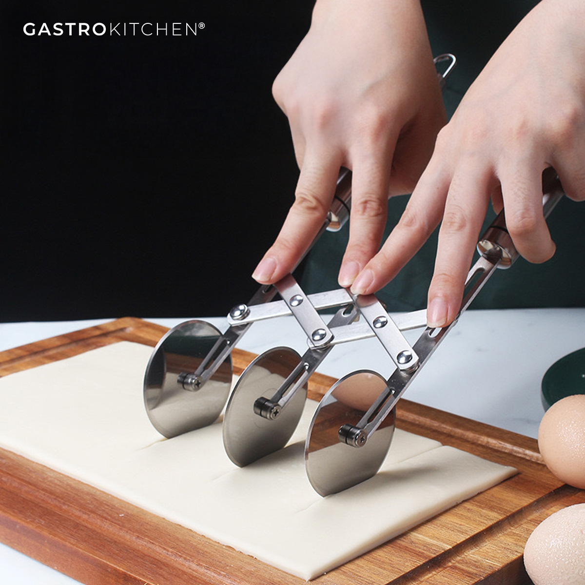 Równomierny krajalnica do ciasta z trzema ostrymi nożami ze stali nierdzewnej to doskonały pomocnik w każdej kuchni. Pozwala szybko i precyzyjnie dzielić ciasto na równe kawałki, idealny do przygotowania wypieków, ciast, pizzy lub makaronu. Solidne wykonanie i regulowany rozstaw noży gwarantują łatwe i wygodne użytkowanie. Ergonomiczne uchwyty zapewniają pewny chwyt i komfortowe krojenie. Krajalnica jest odpowiednia do użytku domowego oraz profesjonalnego w gastronomii.