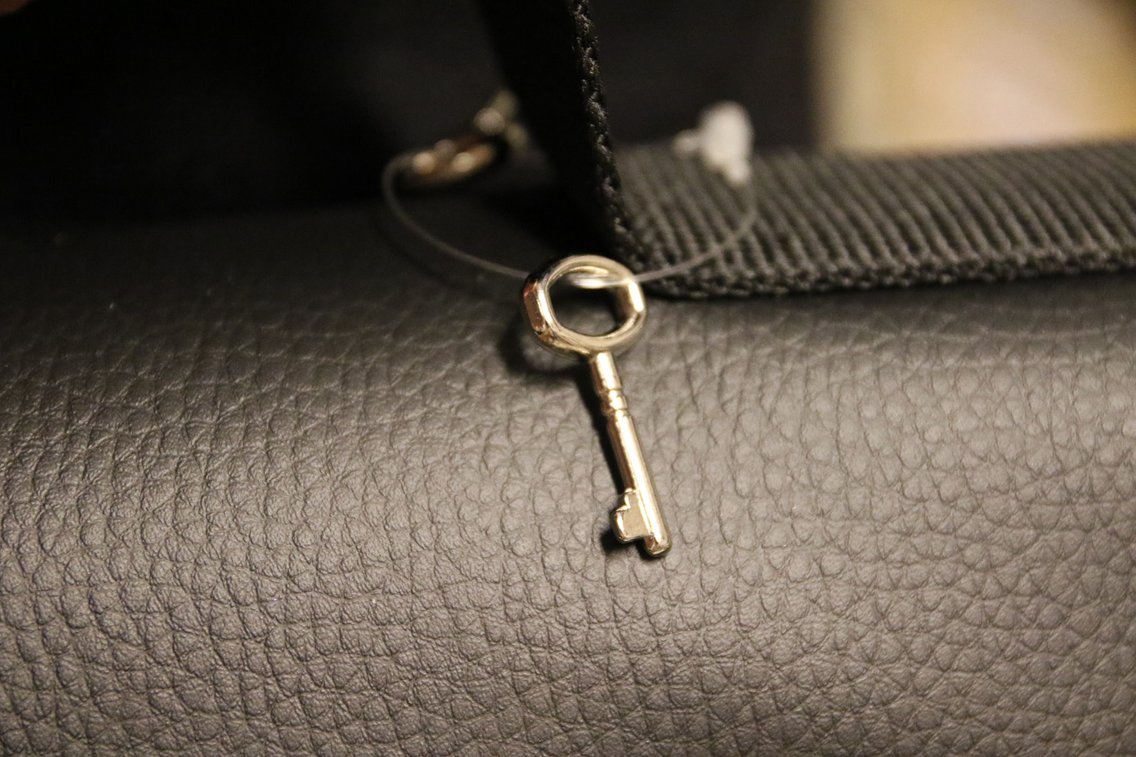 • Rolowana skórzana torba Dick jest zamykana, a na przedniej stronie torby znajduje się przezroczysta kieszonka na wizytówki dla łatwej identyfikacji właściciela torby.