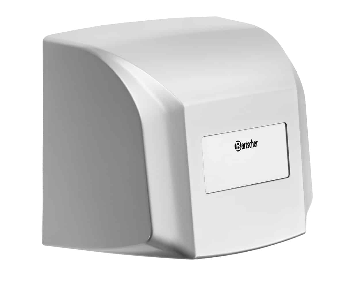 Suszarka do rąk IS 31LS-W | Bartscher 850011 to kompaktowe, ale wydajne urządzenie z czujnikiem podczerwieni i funkcją automatycznego uruchamiania/wyłączania, wyposażone w bardzo mocną dyszę powietrzną, która umożliwia szybkie i dokładne suszenie rąk.