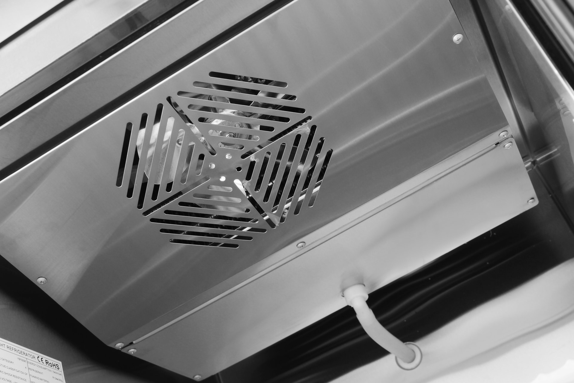 Wewnętrzna i zewnętrzna obudowa szafy chłodniczej Profi Line wykonana z wysokiej jakości stali nierdzewnej AISI 430 (tylna zewnętrzna ścianka z ocynkowanej stali).