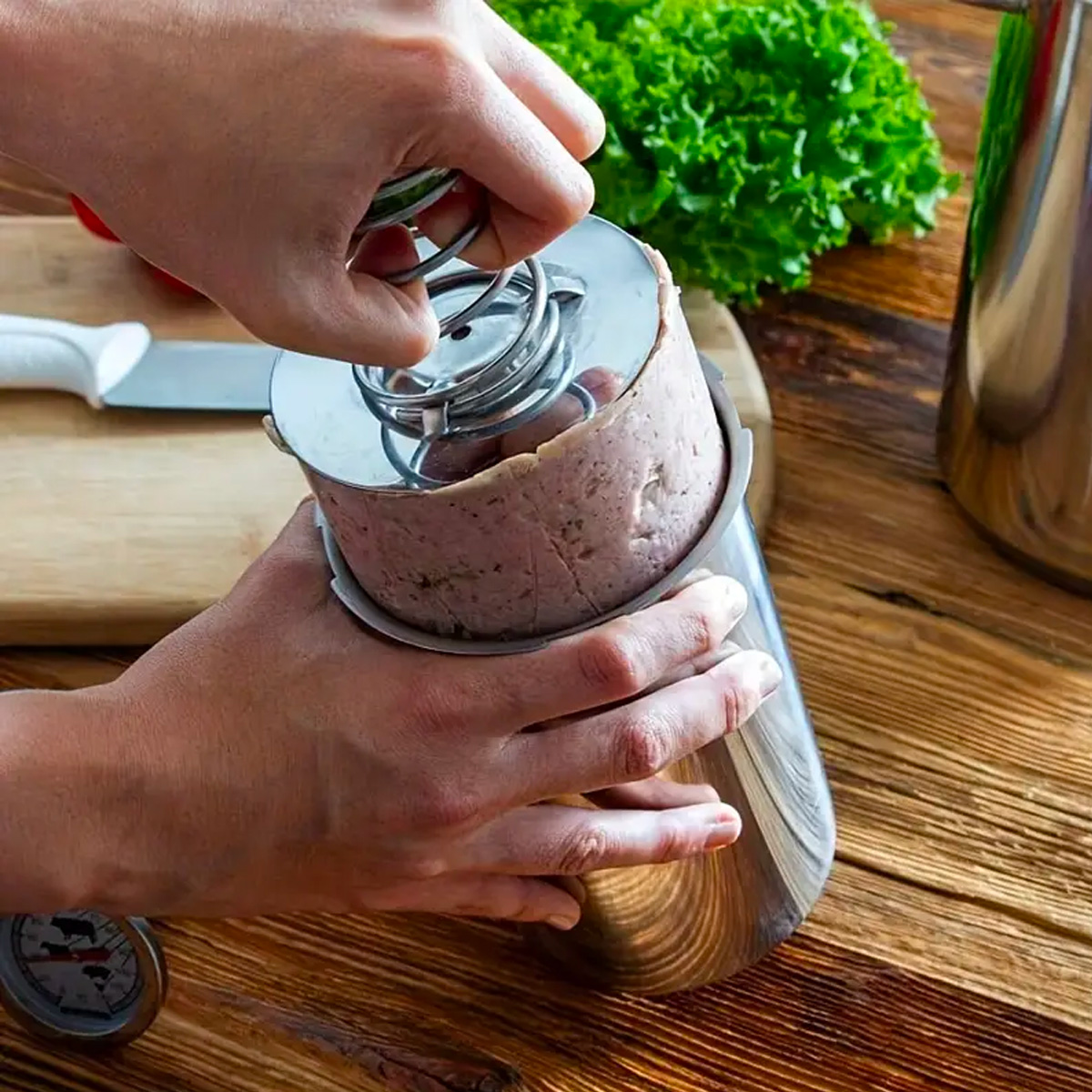 Domowa produkcja szynki, pasztetów i mięsnych specjałów nigdy nie była prostsza! Nierdzewny szynkowar z termometrem pozwala przygotować wysokiej jakości domową szynkę bez dodatku konserwantów i sztucznych składników. Wykonany ze stali nierdzewnej 304, odporny na korozję, łatwy w czyszczeniu i gwarantuje długą żywotność.