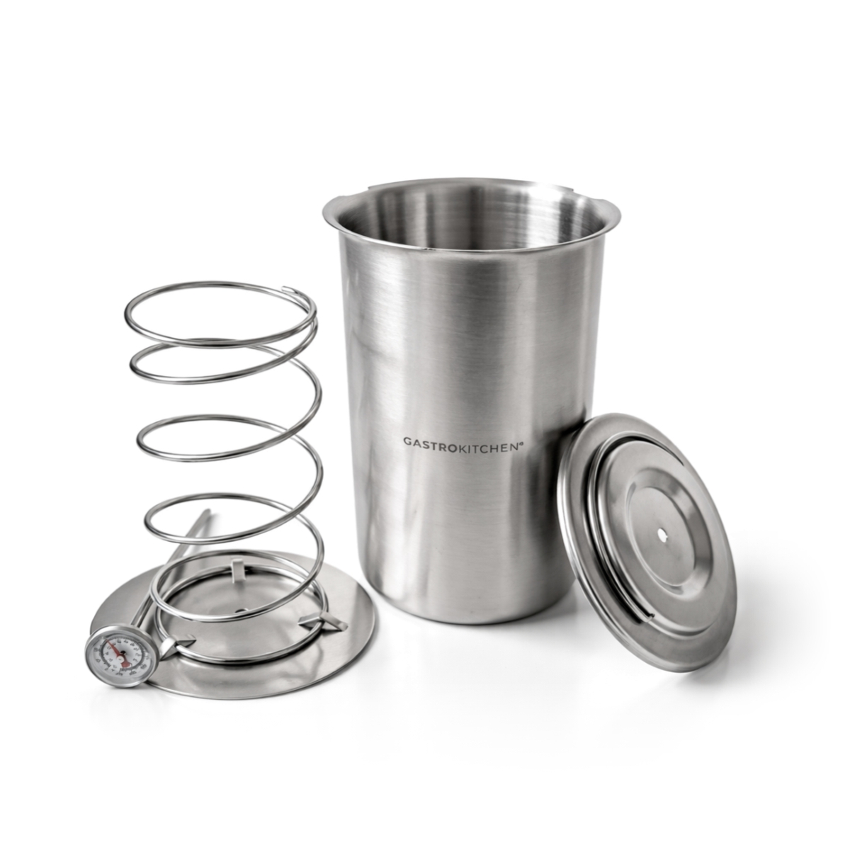 - Zawartość opakowania: pojemnik, pokrywka z termometrem, sprężynowy docisk