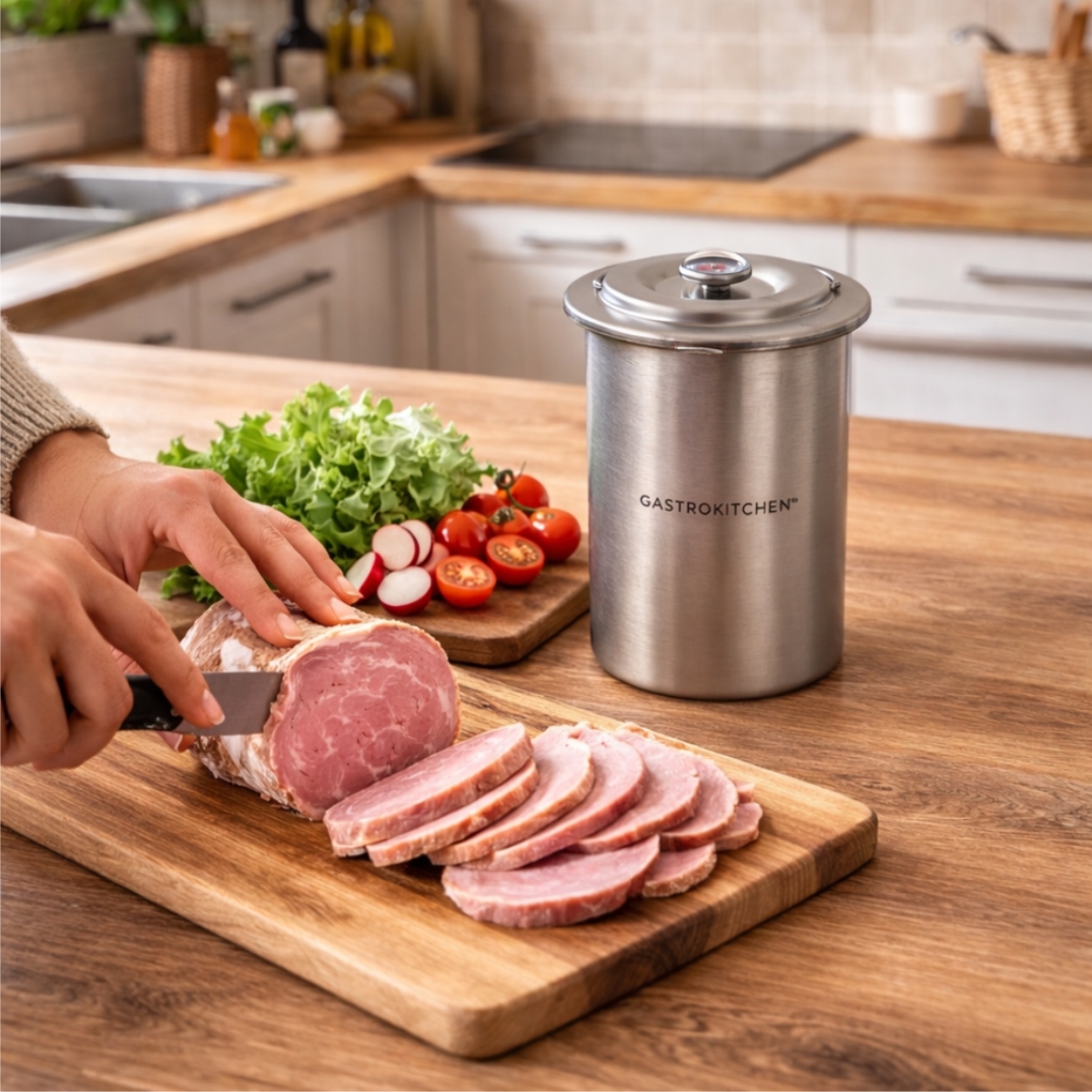 Domowy szynkowar Gastrokitchen to idealny wybór do przygotowania domowej szynki, rolad i innych mięsnych specjałów. Sprawdzi się zarówno w domu, jak i w profesjonalnej kuchni, a także docenisz go podczas przygotowywania zdrowych i smacznych potraw dla całej rodziny.
