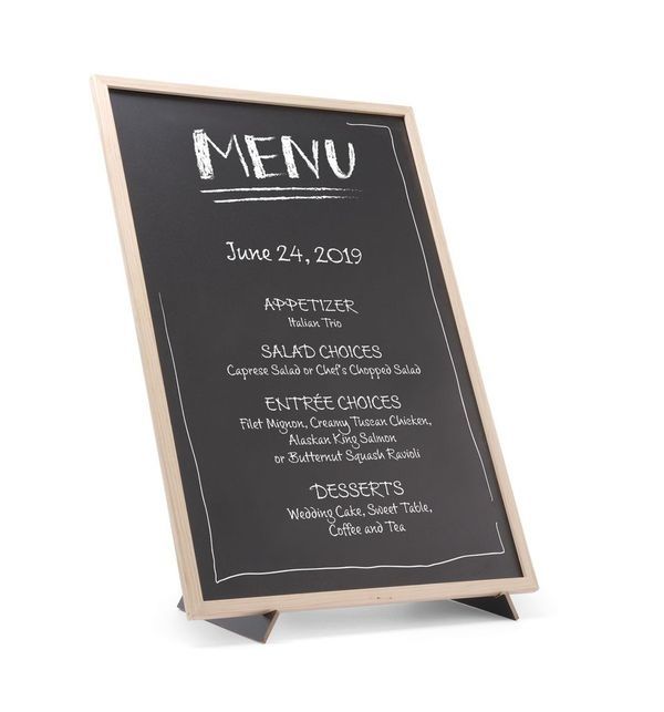 Ta piękna, duża tablica została osadzona w eleganckiej drewnianej ramie, która nadaje tablicy stylowy i elegancki wygląd. Tablica to doskonały wybór, aby powitać lub zwrócić uwagę klientów.