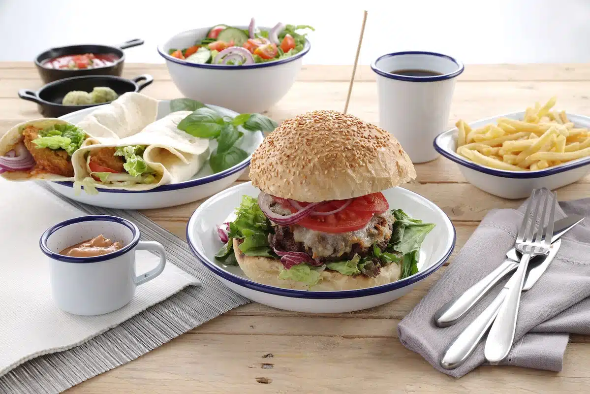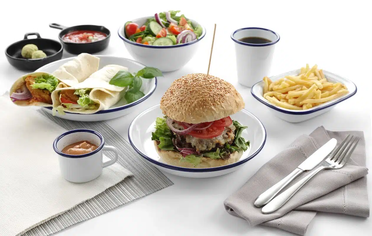 Talerz głęboki – emaliowany – Ø 200 mm | Hendi 621257 to elegancki talerz wykonany ze stali pokrytej białą emalią z delikatnym niebieskim rantem.