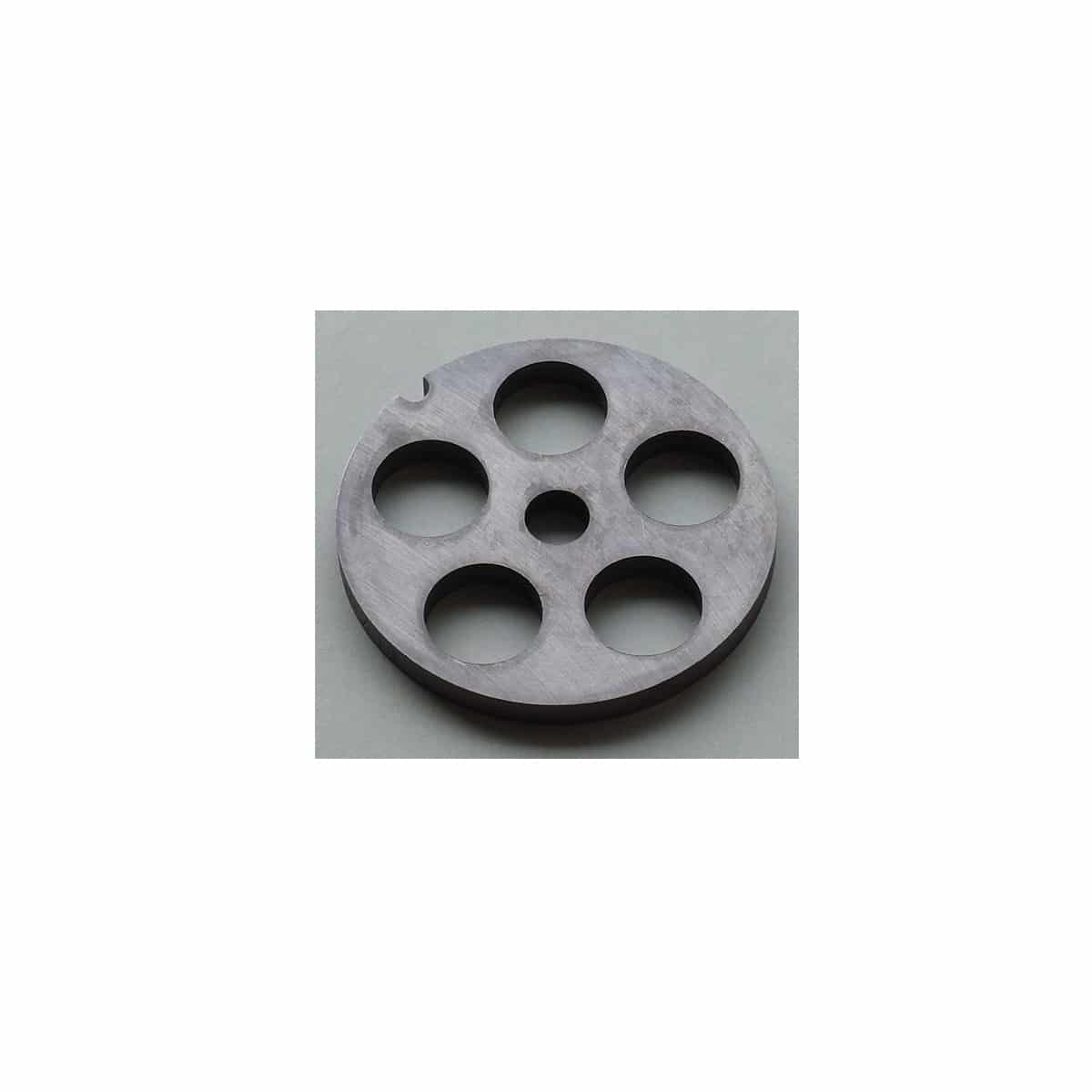 Tarcza do maszynki 10 – 18 | KDS 5280 została wyprodukowana przez czeską firmę KDS i jest dodatkiem do maszynki do mięsa Porkert 10. Średnica otworów to 18 mm, idealna do mielenia mięsa na większe kawałki, np. do kiełbas. Aby zachować jak najdłuższą żywotność, producent zaleca po użyciu umyć tarczę ciepłą wodą, dokładnie osuszyć i przechowywać w suchym i nieagresywnym środowisku. Minimalna gwarantowana twardość to 50 HRc.