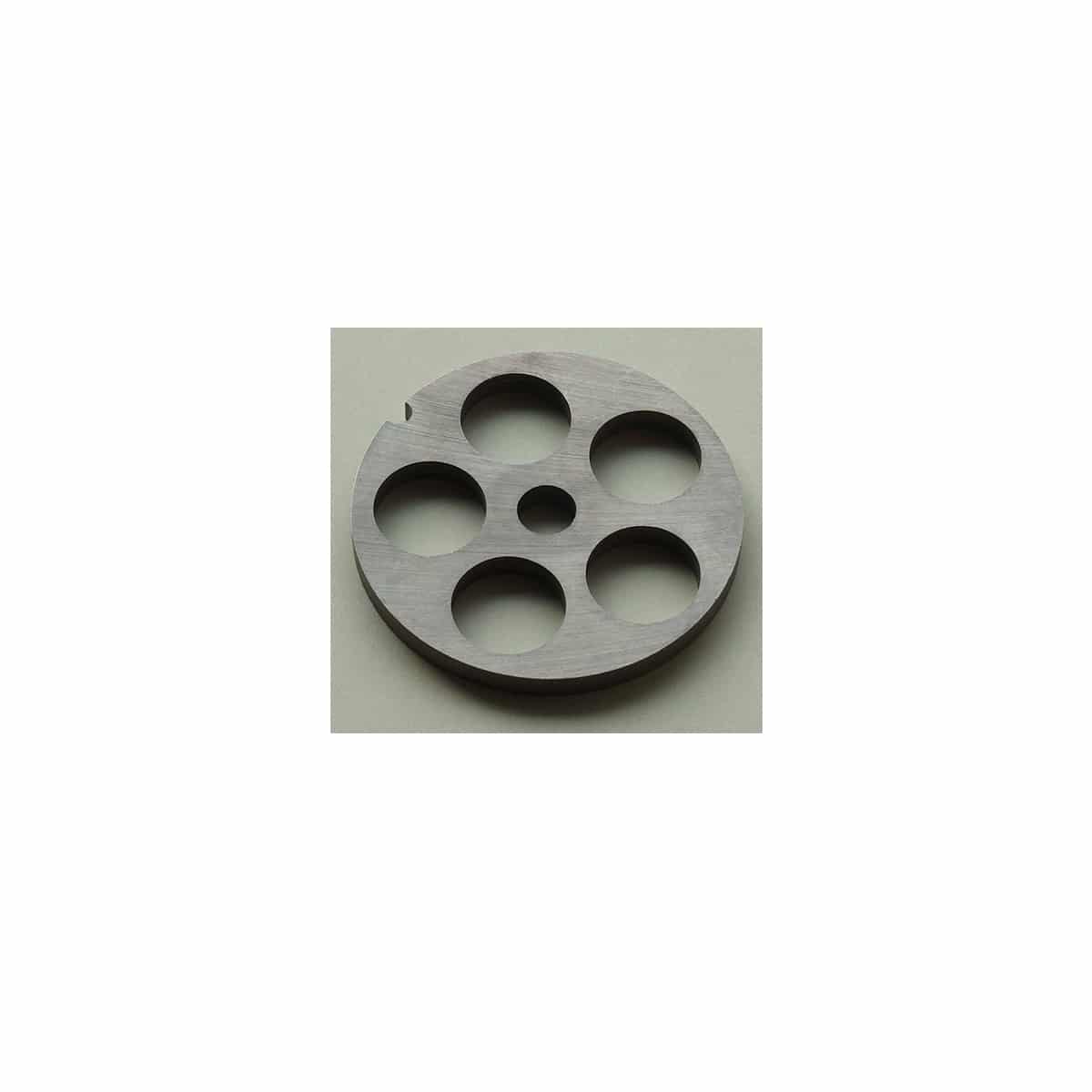 Tarcza do maszynki 10 – 20 | KDS 5290 została wyprodukowana przez czeską firmę KDS i jest dodatkiem do maszynki do mięsa Porkert 10. Średnica otworów to 20 mm, idealna do mielenia mięsa na większe kawałki – doskonała na domowe uboje. Aby zachować jak najdłuższą żywotność, producent zaleca po użyciu umyć tarczę ciepłą wodą, dokładnie osuszyć i przechowywać w suchym i nieagresywnym środowisku. Minimalna gwarantowana twardość to 50 HRc.
