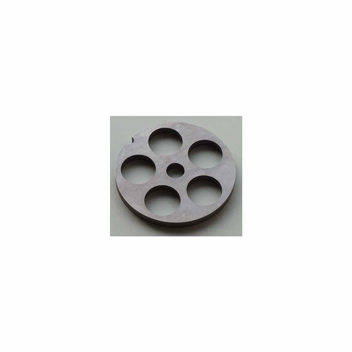 Tarcza do maszynki 22 – 24 | KDS 5394 została wyprodukowana przez czeską firmę KDS i jest dodatkiem do maszynki do mięsa Porkert 22. Średnica otworów to 24 mm, doskonale nadaje się do mielenia mięsa na większe kawałki. Aby zachować jak najdłuższą żywotność, producent zaleca po użyciu umyć tarczę ciepłą wodą, dokładnie osuszyć i przechowywać w suchym i nieagresywnym środowisku. Minimalna gwarantowana twardość to 50 HRc.
