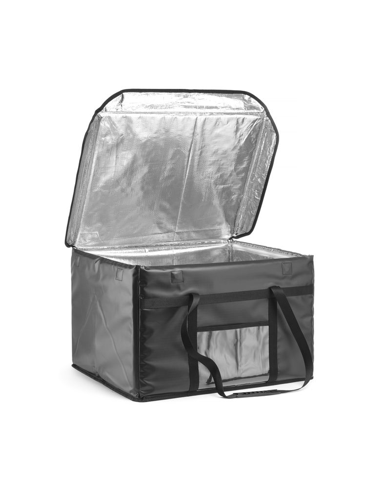 Przeznaczona dla firm cateringowych oferujących jedzenie z dostawą. Wysokiej jakości, trójwarstwowa izolacja utrzymuje ciepłe i zimne potrawy w odpowiedniej temperaturze, co gwarantuje zadowolenie klienta: wytrzymały, wodoodporny poliester na zewnątrz, łatwa do czyszczenia warstwa pianki PE wewnątrz ścianek, aluminiowa folia od środka izoluje i odbija ciepło, łatwa do czyszczenia.