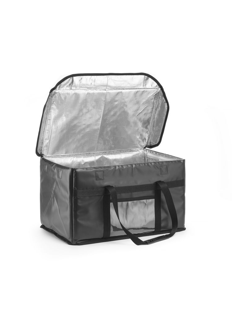 Przeznaczona dla firm cateringowych oferujących dostawę posiłków. Wysokiej jakości, trójwarstwowa izolacja utrzymuje ciepłe i zimne potrawy w odpowiedniej temperaturze, co gwarantuje zadowolenie klienta: wytrzymały, wodoodporny poliester na zewnątrz, łatwa do czyszczenia warstwa pianki PE wewnątrz ścianek, aluminiowa folia od środka izoluje i odbija ciepło, łatwa do czyszczenia