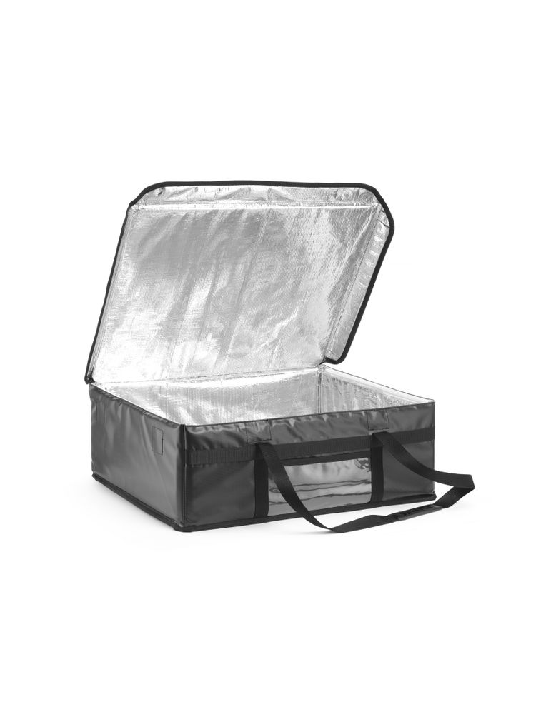 Przeznaczona dla firm cateringowych oferujących dostawę posiłków. Wysokiej jakości, trójwarstwowa izolacja utrzymuje ciepłe i zimne potrawy w odpowiedniej temperaturze, co gwarantuje zadowolenie klienta: wytrzymały, wodoodporny poliester na zewnątrz, łatwa do czyszczenia warstwa pianki PE wewnątrz ścianek, aluminiowa folia od środka izoluje i odbija ciepło, łatwa do czyszczenia.