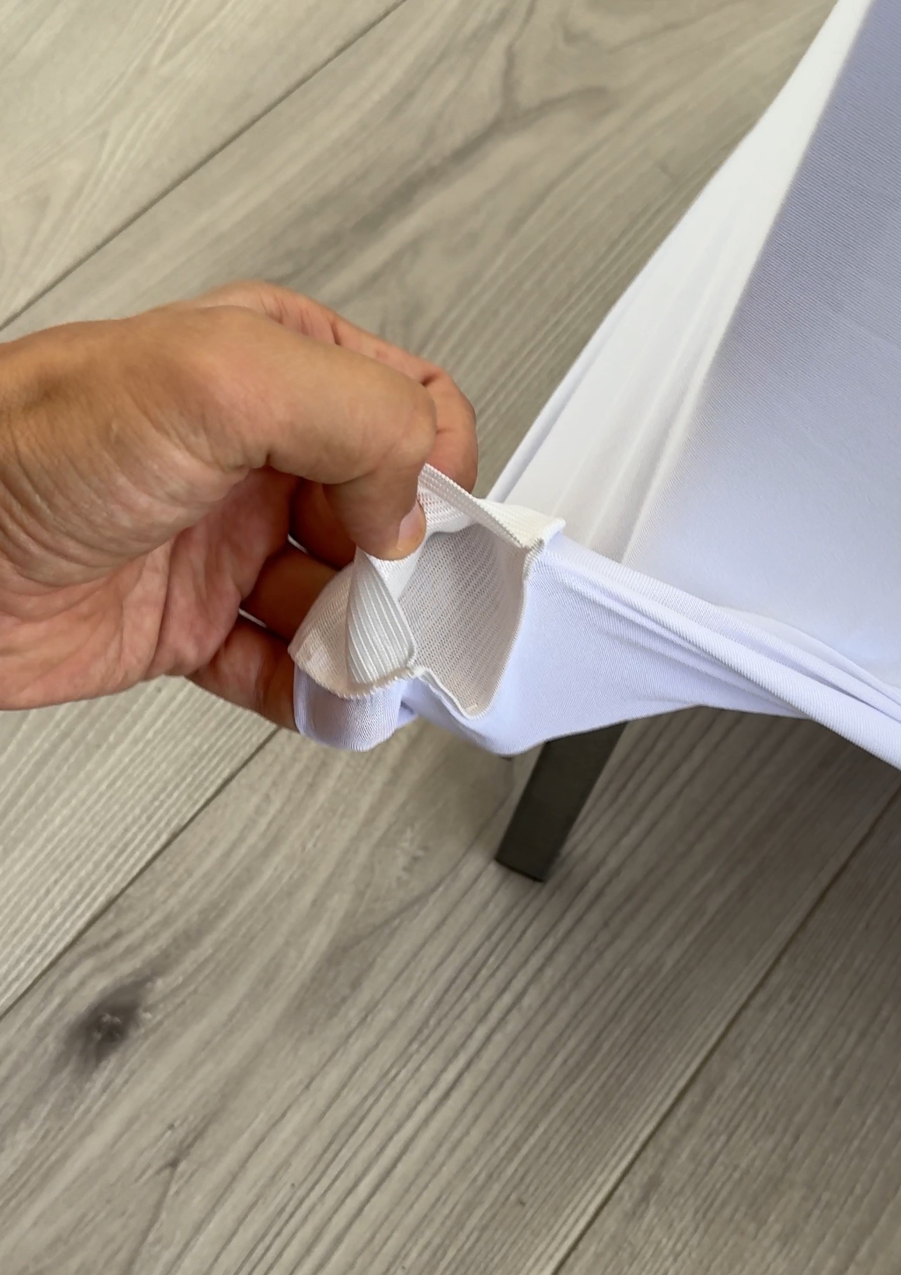- Dolne kieszonki na nogi: Pokrowiec wyposażony jest w cztery elastyczne kieszonki na dole, które służą do wsunięcia nóg krzesła. Taka konstrukcja gwarantuje stabilne zamocowanie pokrowca i zapewnia wszechstronną ochronę krzesła. Mocne zamocowanie jednocześnie wydłuża żywotność pokrowca, dzięki czemu idealnie nadaje się do wielokrotnego użytku.