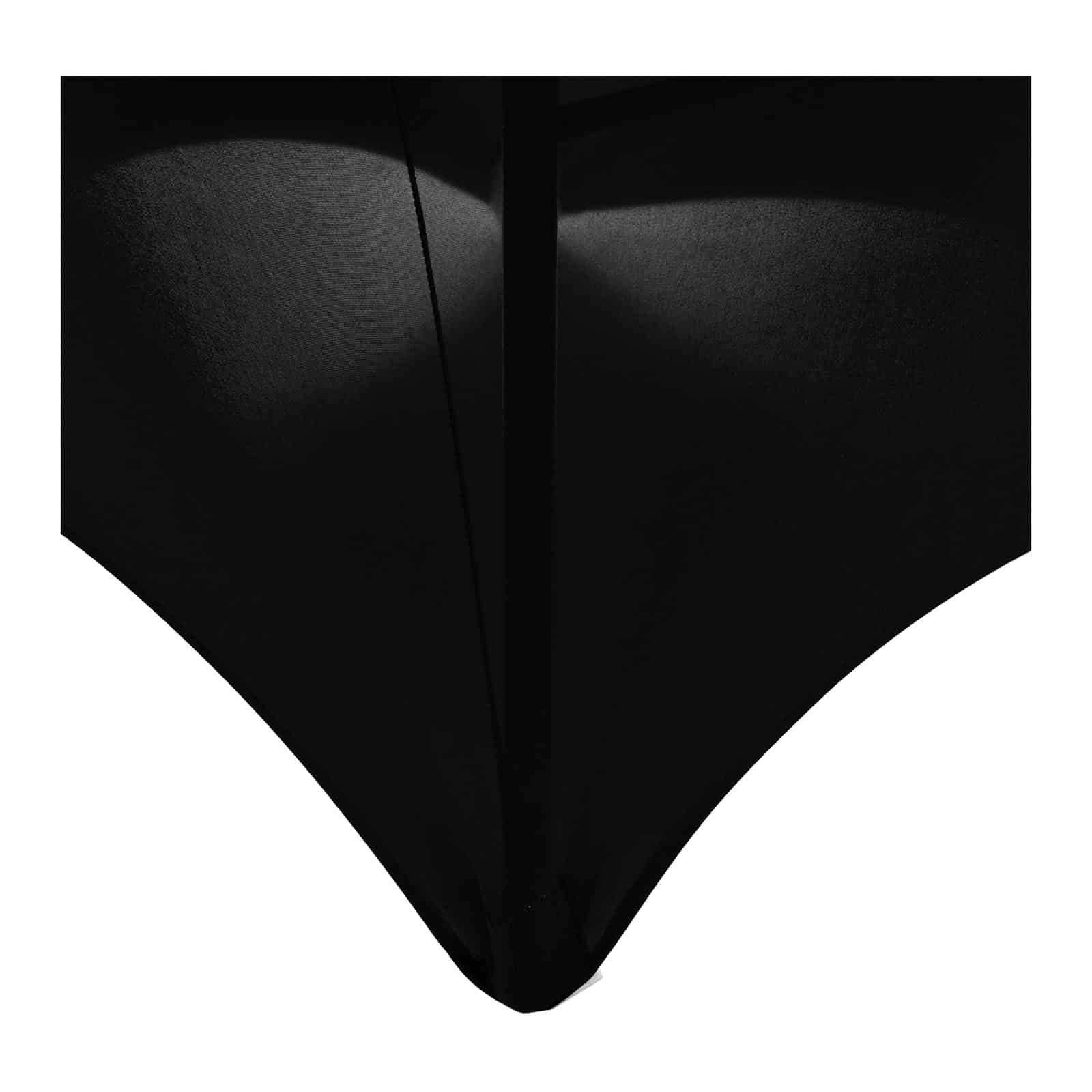 - Pokrowiec na stół w ponadczasowym czarnym kolorze wykonany jest z elastanu – tkaniny, która charakteryzuje się nie tylko wysoką elastycznością, ale także wyjątkową trwałością i dużą odpornością na zabrudzenia.