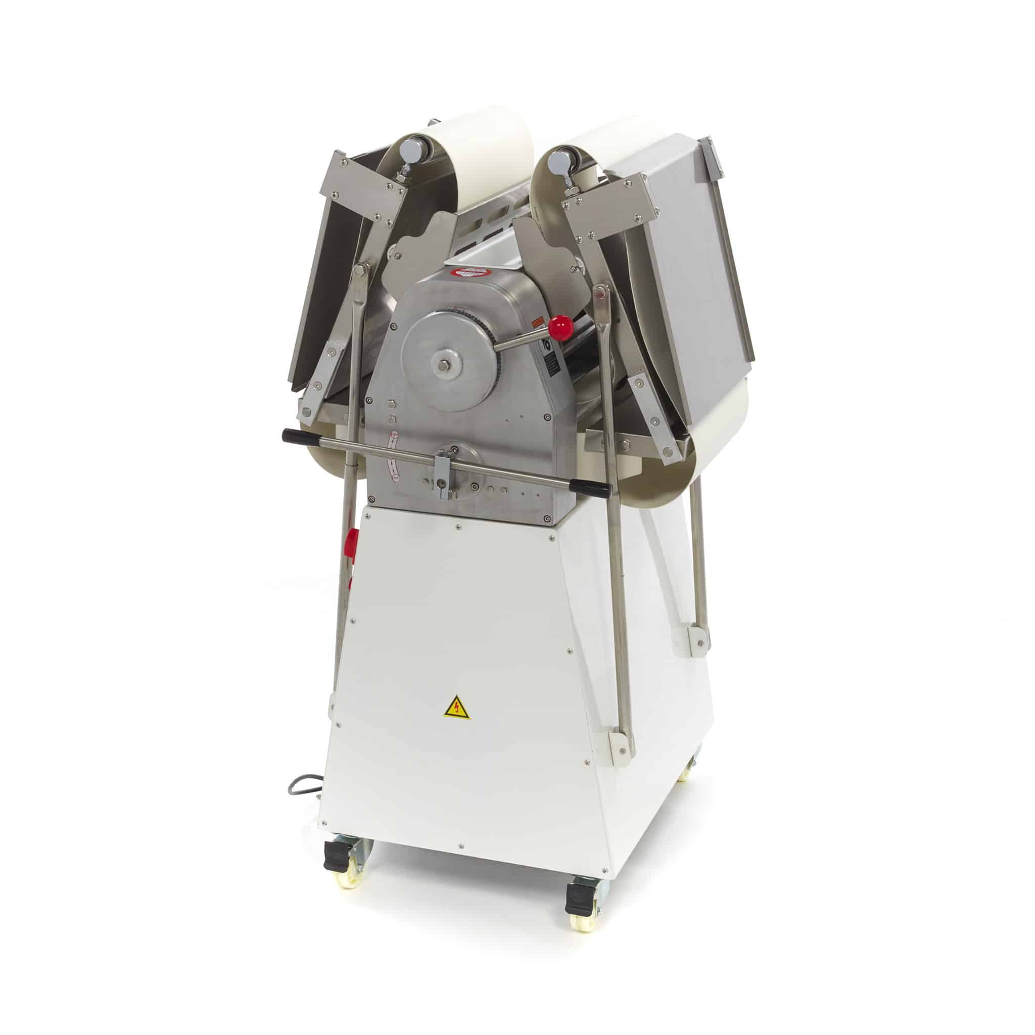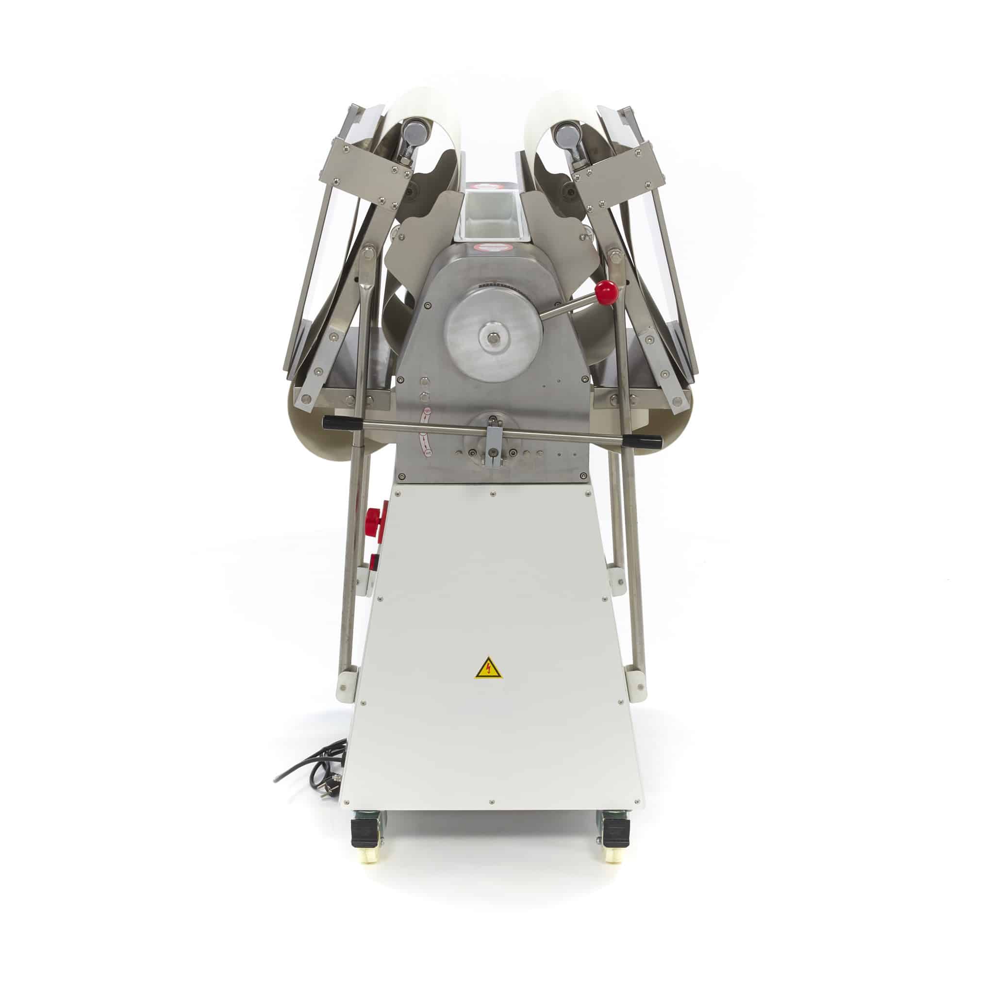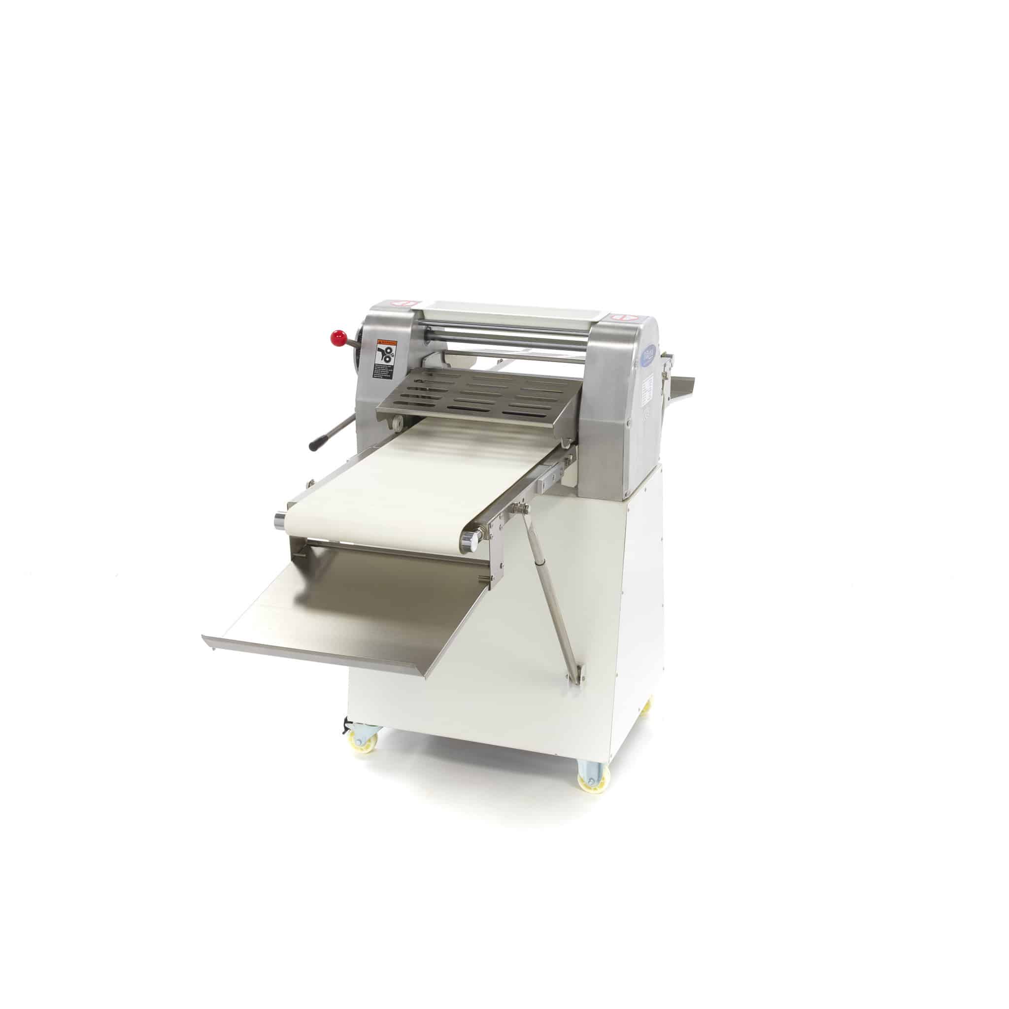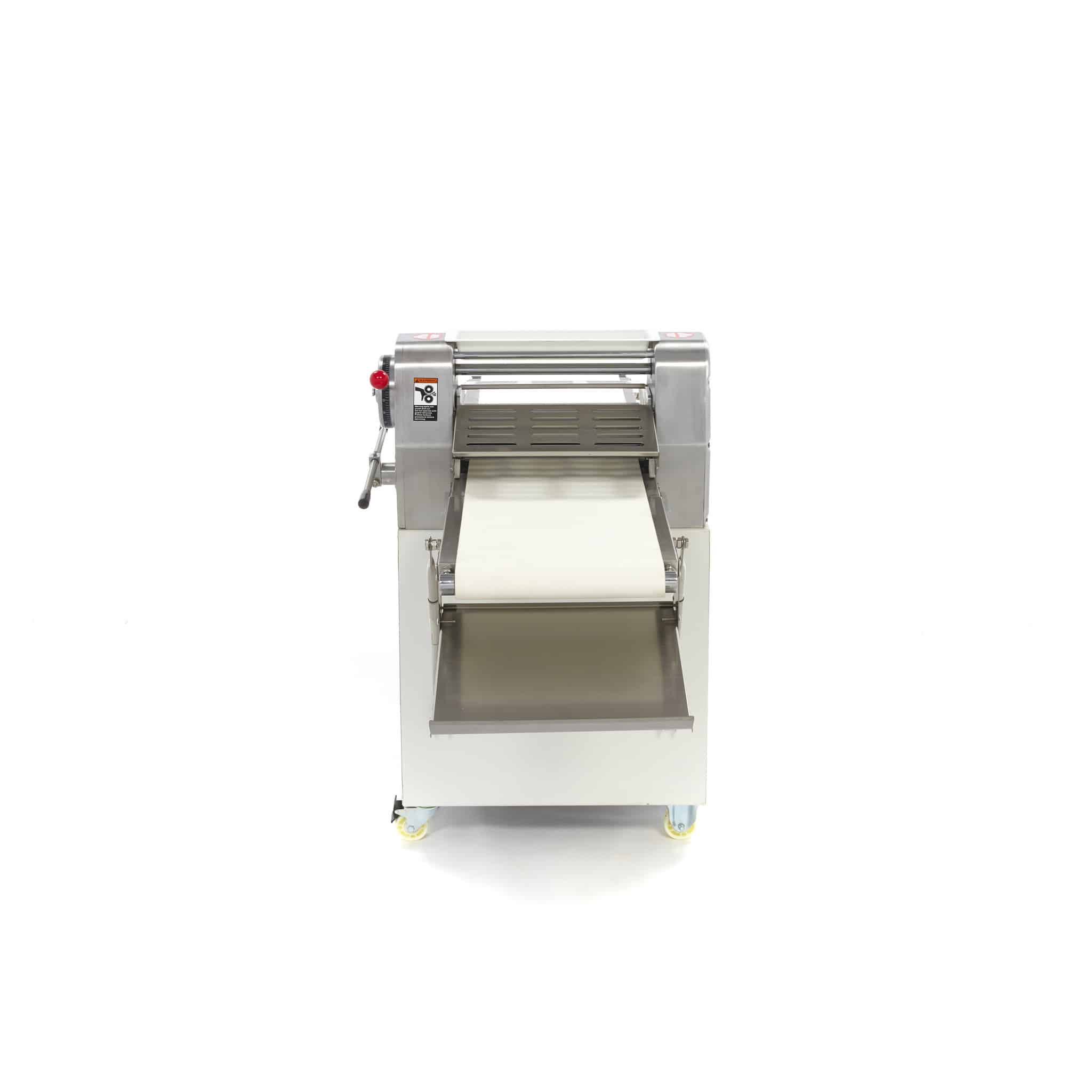 Maszyna do wałkowania ciasta jest odpowiednia do profesjonalnego zastosowania i gwarantuje łatwe rozwałkowanie ciasta. Ciasto umieszcza się na taśmie transportowej, która jest specjalnie przystosowana do kontaktu z żywnością. Następnie za pomocą dźwigni ustawiasz odpowiednią grubość ciasta. Ciasto jest następnie wałkowane przez wałek na drugą stronę. Dzięki temu ciasto szybko i równomiernie uzyskuje odpowiednią grubość. Maszyna do wałkowania ciasta jest łatwa w obsłudze i łatwa do czyszczenia.