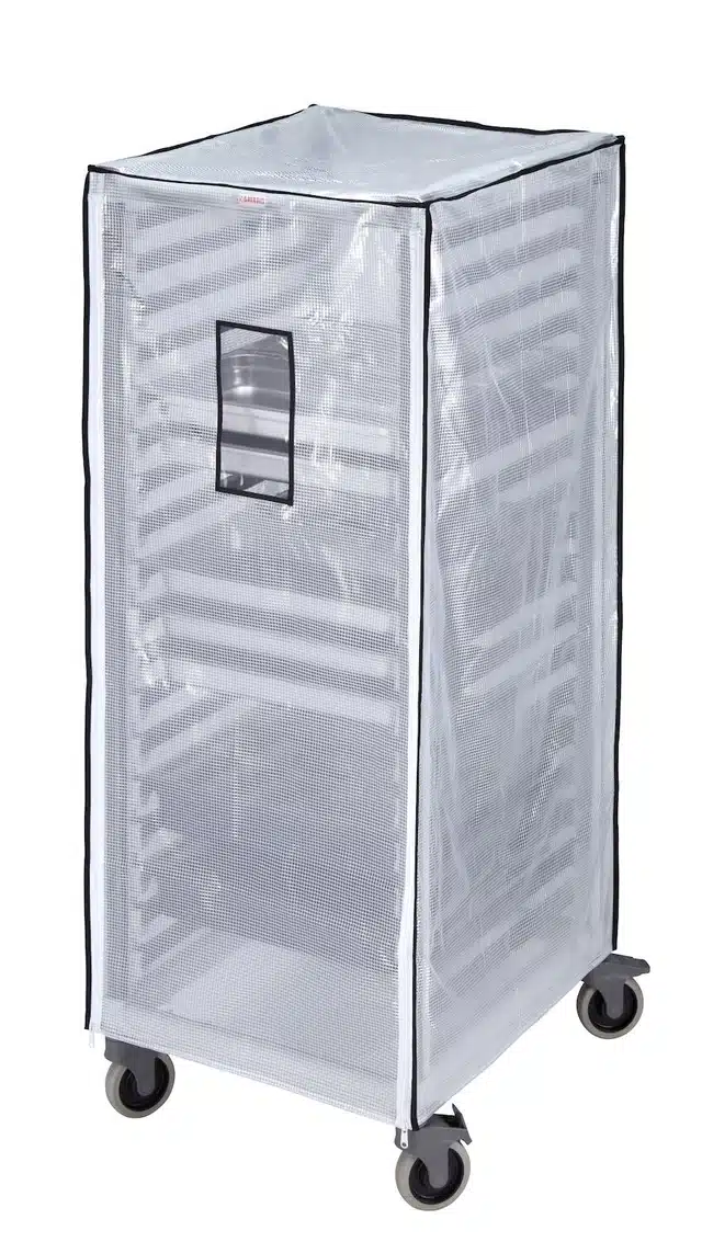 Winylowy pokrowiec na wózek – 18xGN 2/1 – 787x679x1544 mm jest idealnie dopasowany do serii wózków Camshelving® marki Cambro. Chroni przewożoną żywność przed zanieczyszczeniem. Przezroczysty winylowy materiał pozwala zawsze widzieć zawartość wózka, a dostęp do niej jest łatwy dzięki 2 zamkom błyskawicznym po jednej stronie. Dużą zaletą tego pokrowca jest również łatwość czyszczenia.