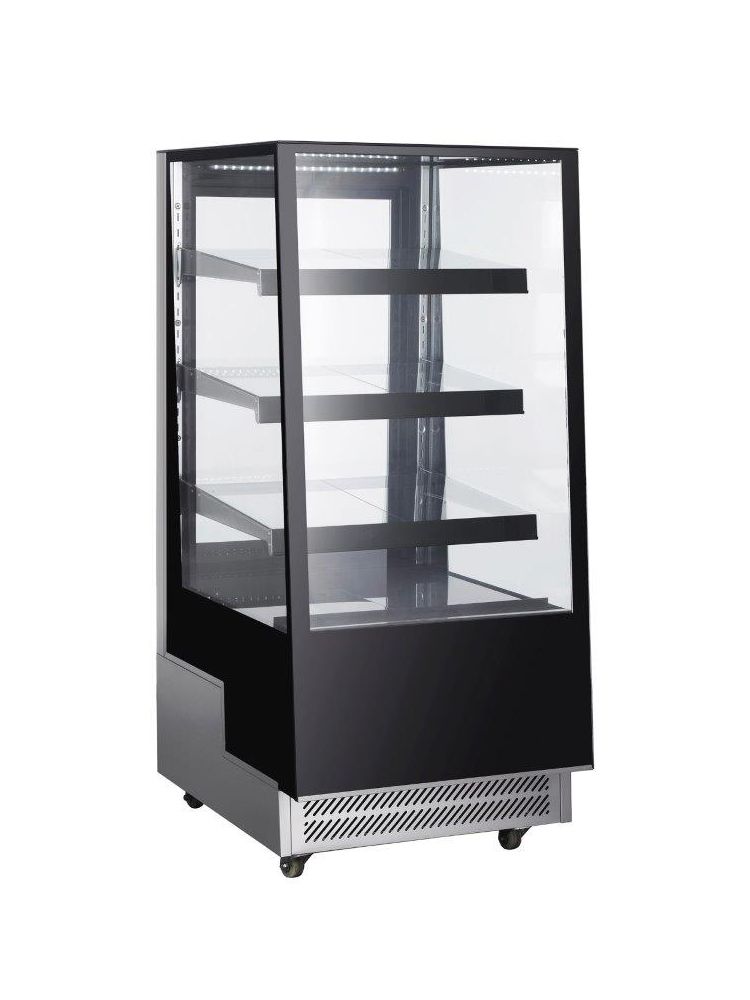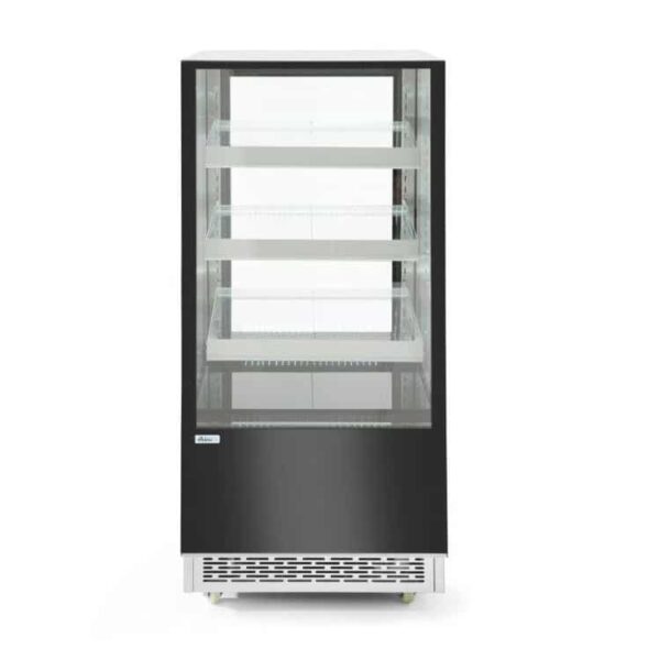 • Wyposażona w 3 regulowane szklane półki lekko pochylone w stronę klienta