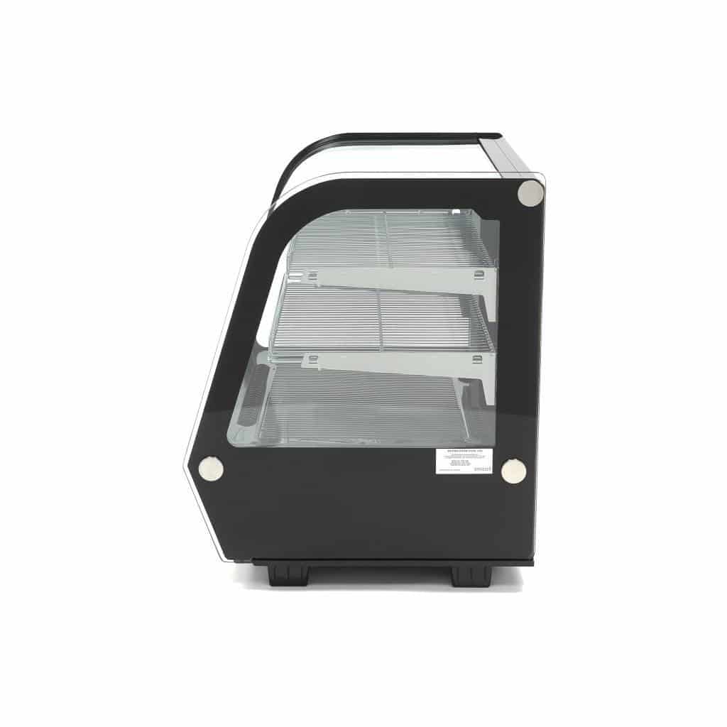 - Lodówka posiada podwójną szybę oraz wbudowane oświetlenie LED wewnątrz. Dzięki temu doskonale nadaje się do ekspozycji ciast, czekoladek i innych przekąsek dla klientów i gości.