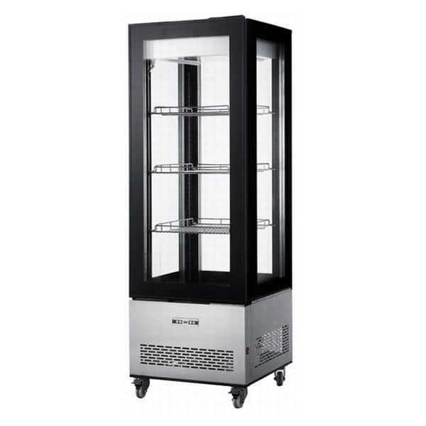 Nierdzewna witryna chłodnicza cukiernicza obsługowa, odpowiednia do cukierni, lodziarni.