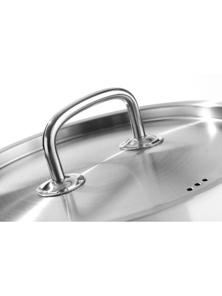 - Stalowe uchwyty z wielopunktowym mocowaniem, nie nagrzewające się, wszystkie pokrywki z otworami do odprowadzania pary