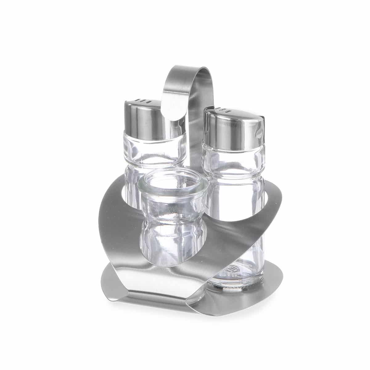 Zestaw do przypraw – 3-częściowy | Hendi 465325 to trzyczęściowy komplet przyprawników, który składa się z pojemnika na sól, pieprz i wykałaczki. Najwyższa jakość, doskonałe wykonanie oraz wyjątkowa funkcjonalność sprawiają, że produkty Hendi są odpowiednie do każdej kuchni. Zestaw wykonany jest ze stali nierdzewnej.